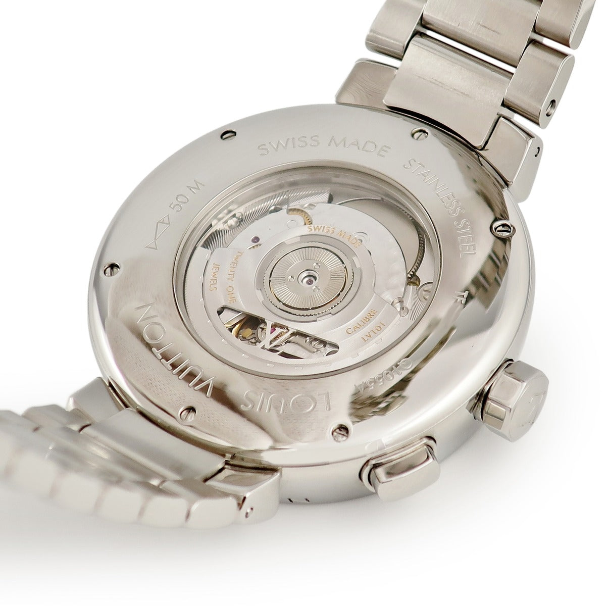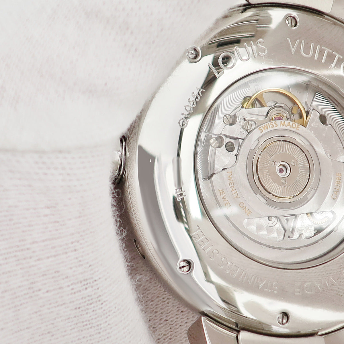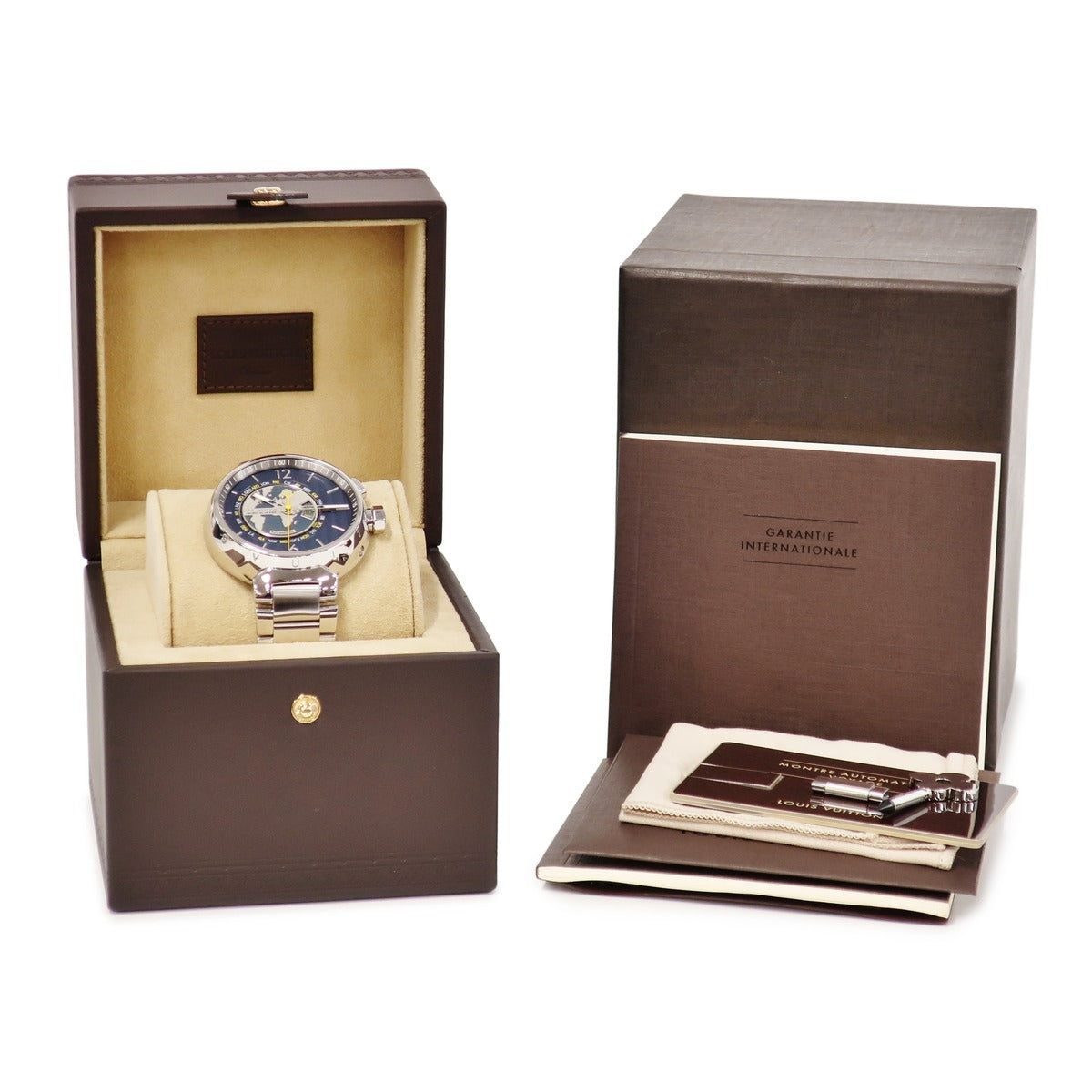 ルイヴィトン LOUIS VUITTON タンブール ワールドタイマー Q1055A 自動巻き メンズ デイト GMT ブルー 地球