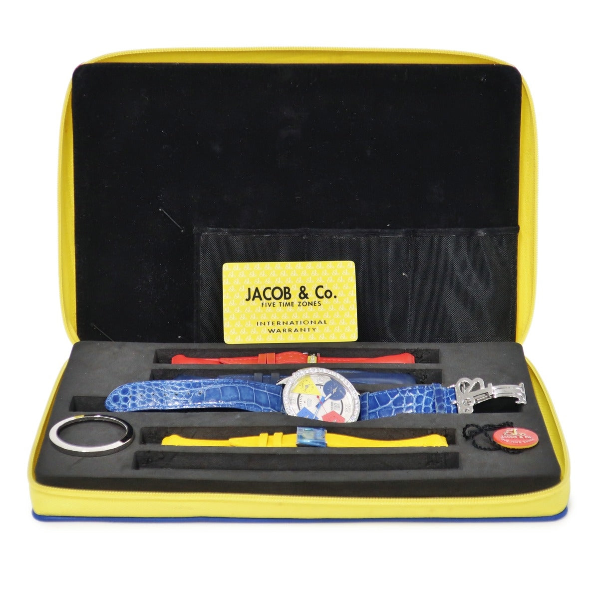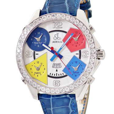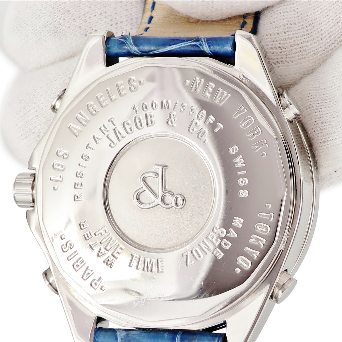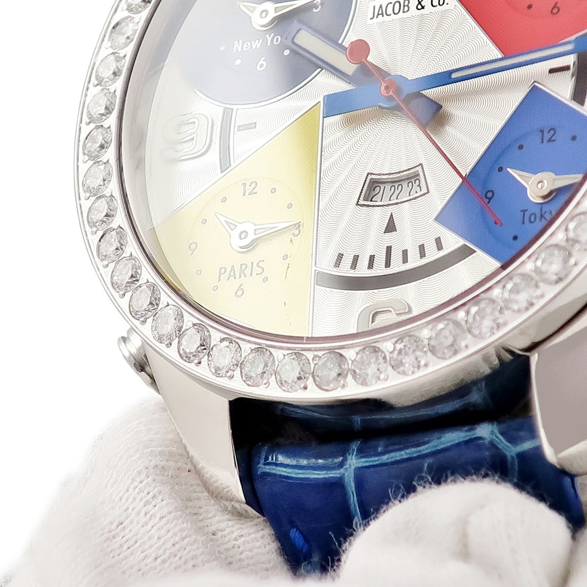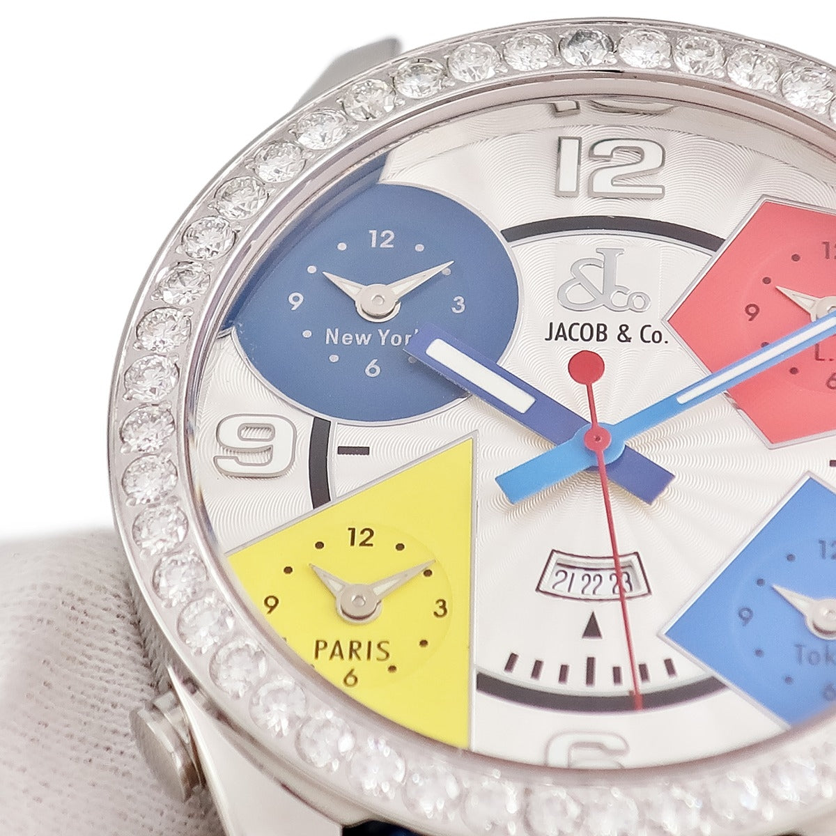 ジェイコブ JACOB&CO ファイブタイムゾーン JC-1D クオーツ メンズ 純正ダイヤ ギョウシェ シルバー GMT デイト