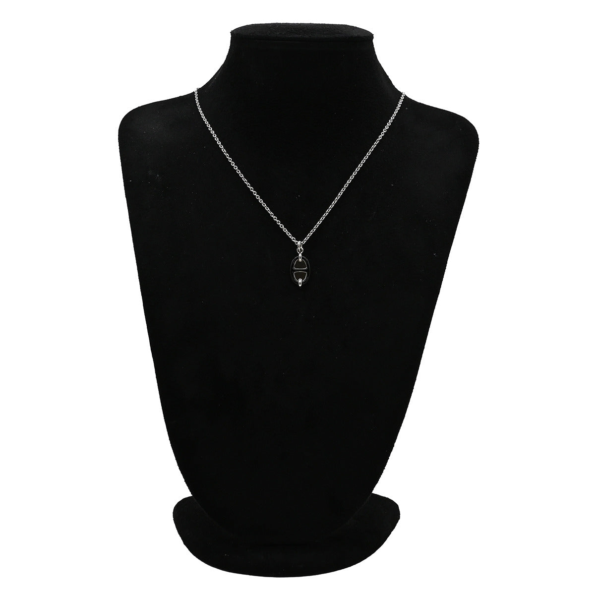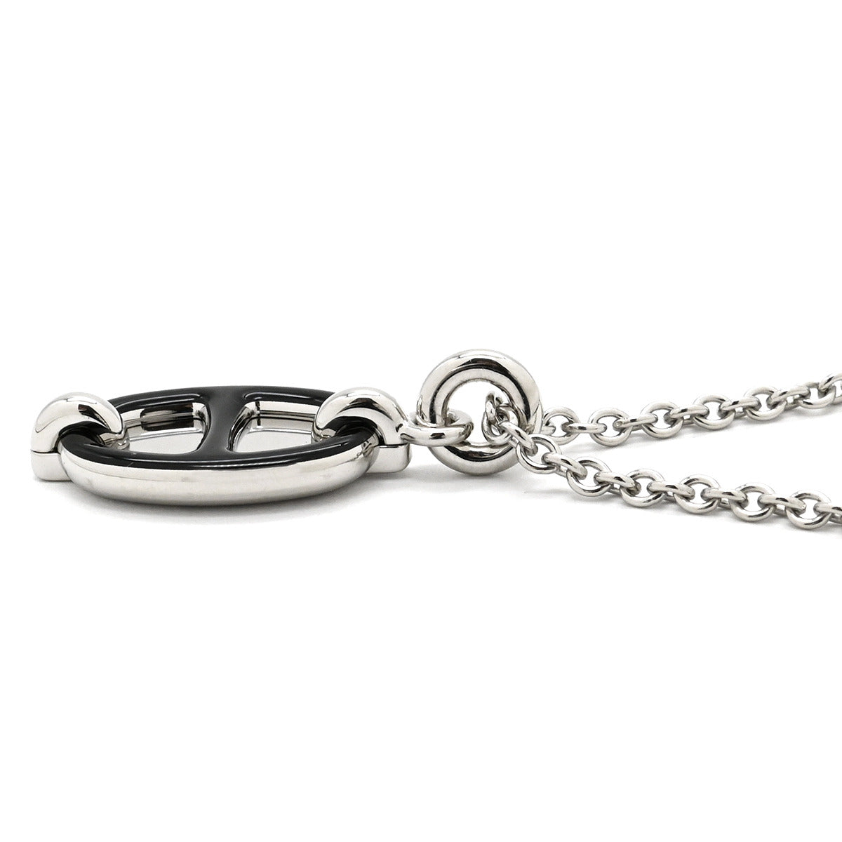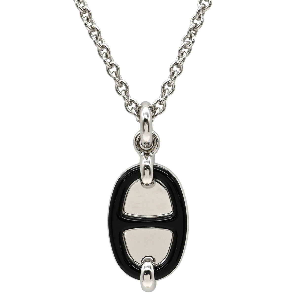 エルメス HERMES ミニマイヨン ブラックXシルバー メタル エナメル ネックレス シルバー金具 シェーヌダンクル 黒