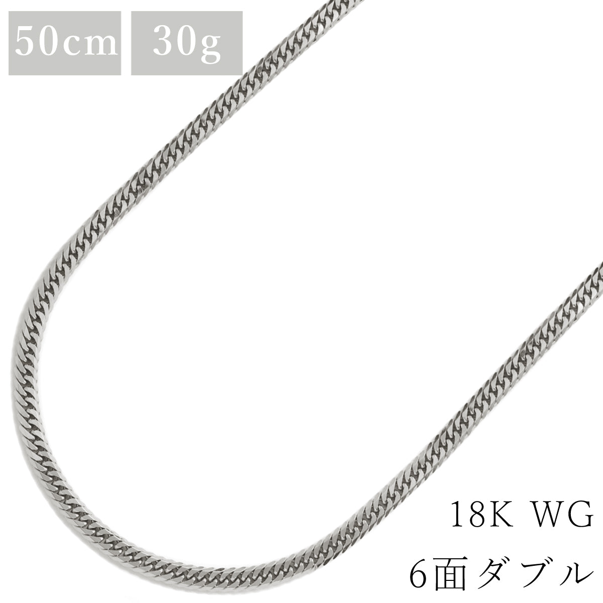 喜平 KIHEI K18WG 18金 50.3cm 30.5g 6面 ダブル W ホワイトゴールド K18WG ネックレス 造幣局検定マーク ※ショッピングローン対応していません。
