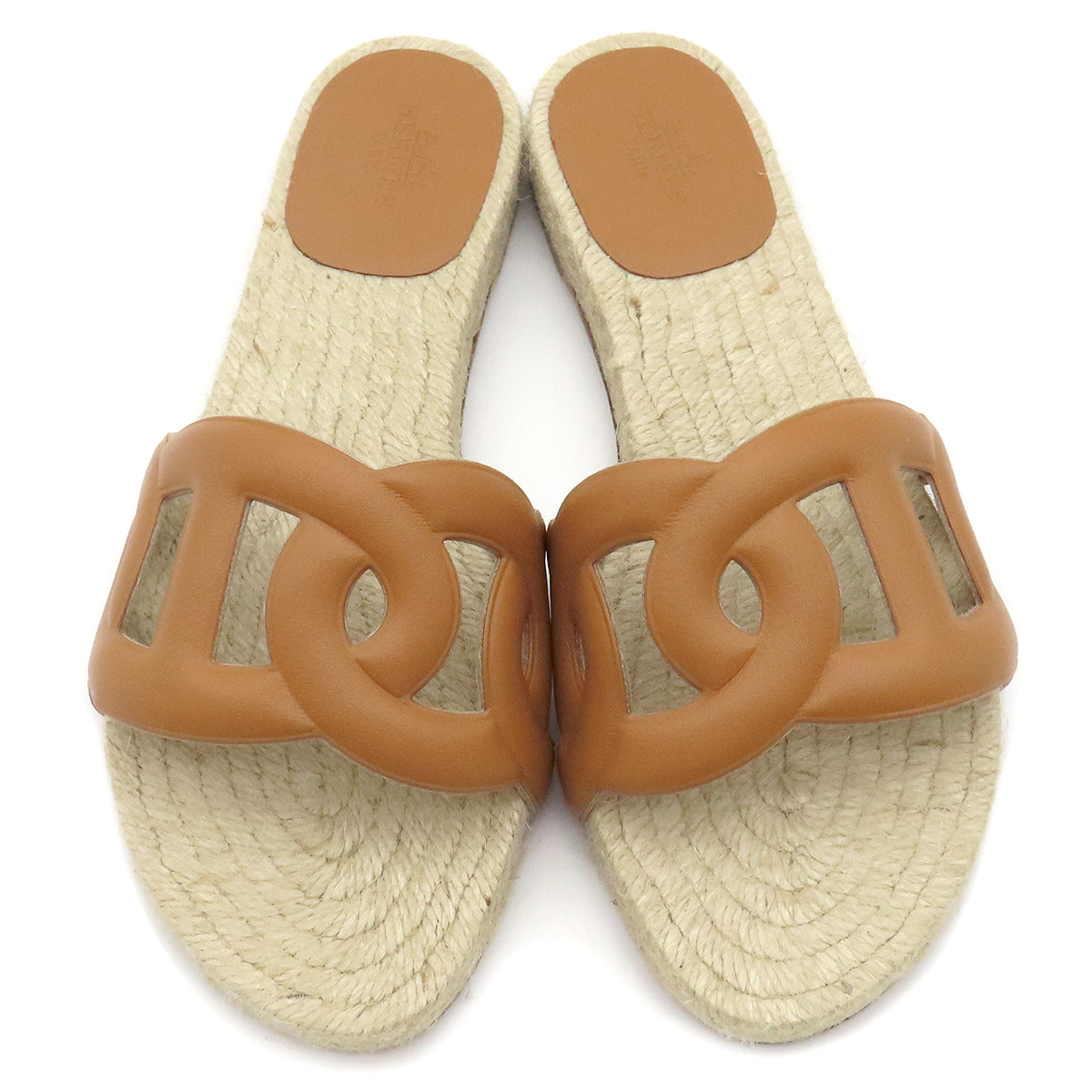 エルメス HERMES エスパドリーユ ファモサ ナチュラル ナッパレザー #35 サンダル 茶 シェーヌダンクル