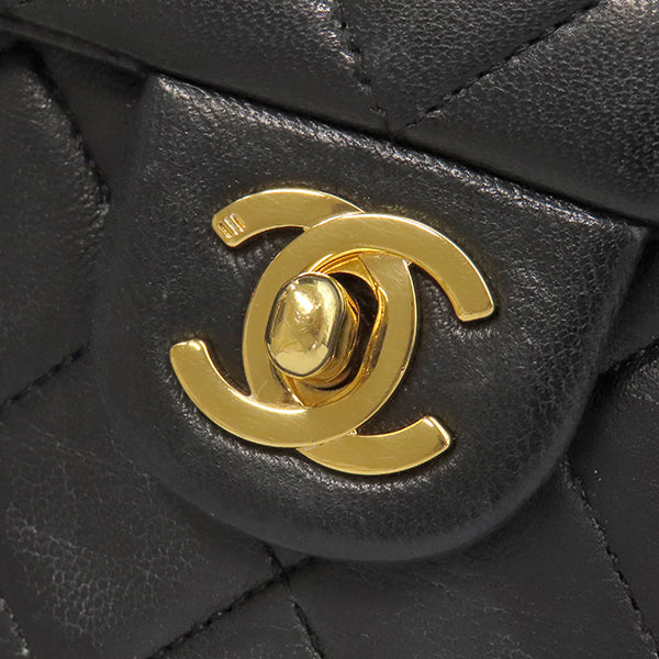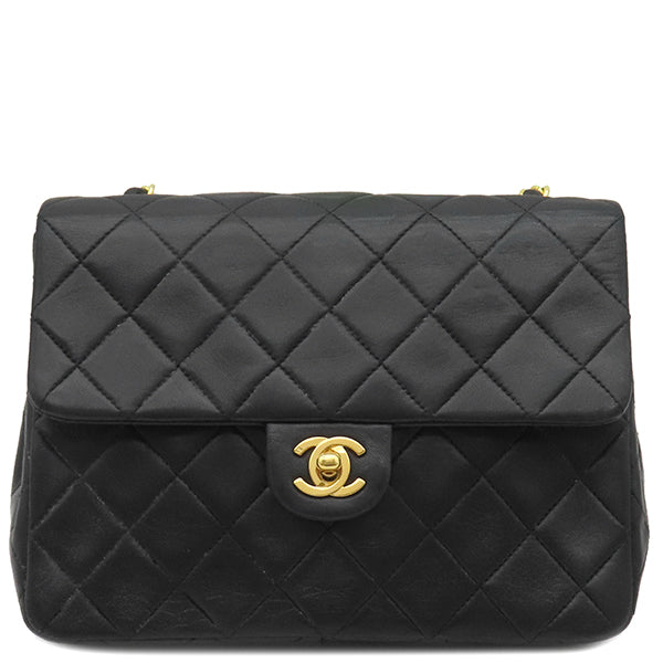 シャネル CHANEL スクエア マトラッセ チェーンショルダー ブラック ラムスキン ショルダーバッグ ゴールド金具 黒 斜め掛け