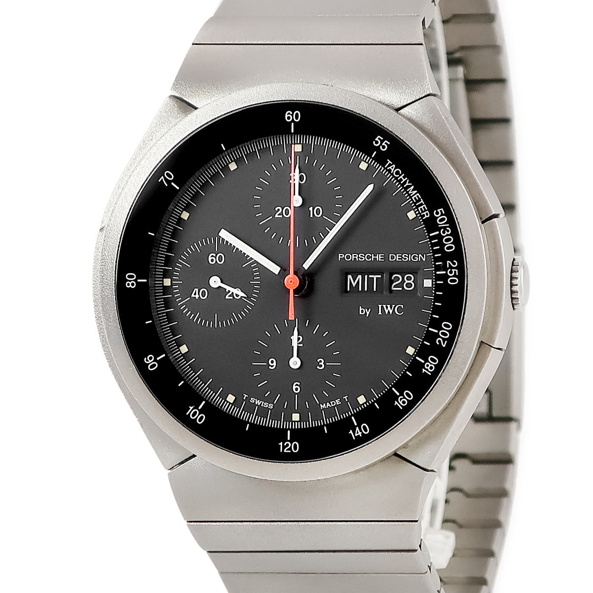 ポルシェ デザイン PORSCHE DESIGN チタニウム クロノグラフ IW3702 自動巻き メンズ IWCコラボ 黒 デイデイト スモセコ ラウンド