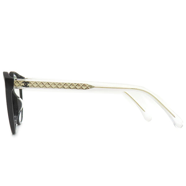シャネル CHANEL ココマーク 53□18 3401-A ブラック×クリア プラスチック メガネ シャンパンゴールド金具 黒 クリアレンズ ボストン