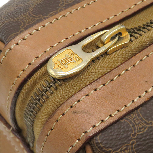 セリーヌ CELINE マカダム ブラウン PVC レザー ボストンバッグ ゴールド金具 総柄 トリオンフ ロゴ ヴィンテージ ハンドバッグ