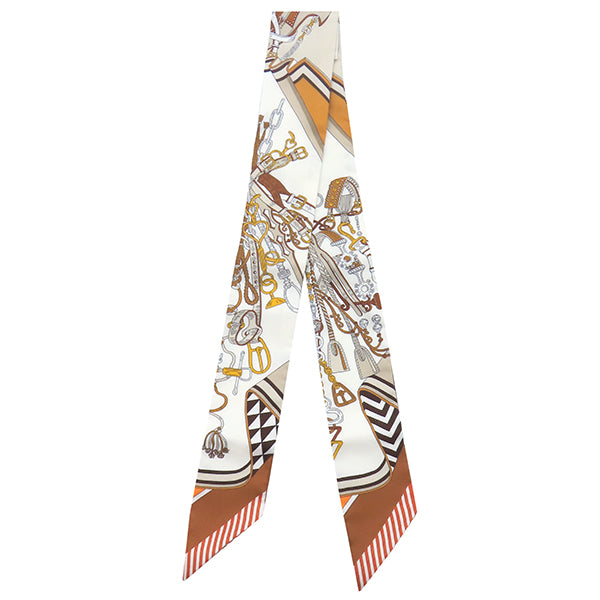 エルメス HERMES ツイリー ブラン×アルザン×エトゥープ シルク スカーフ 【Bouquets Sellier/鞍職人の花束】