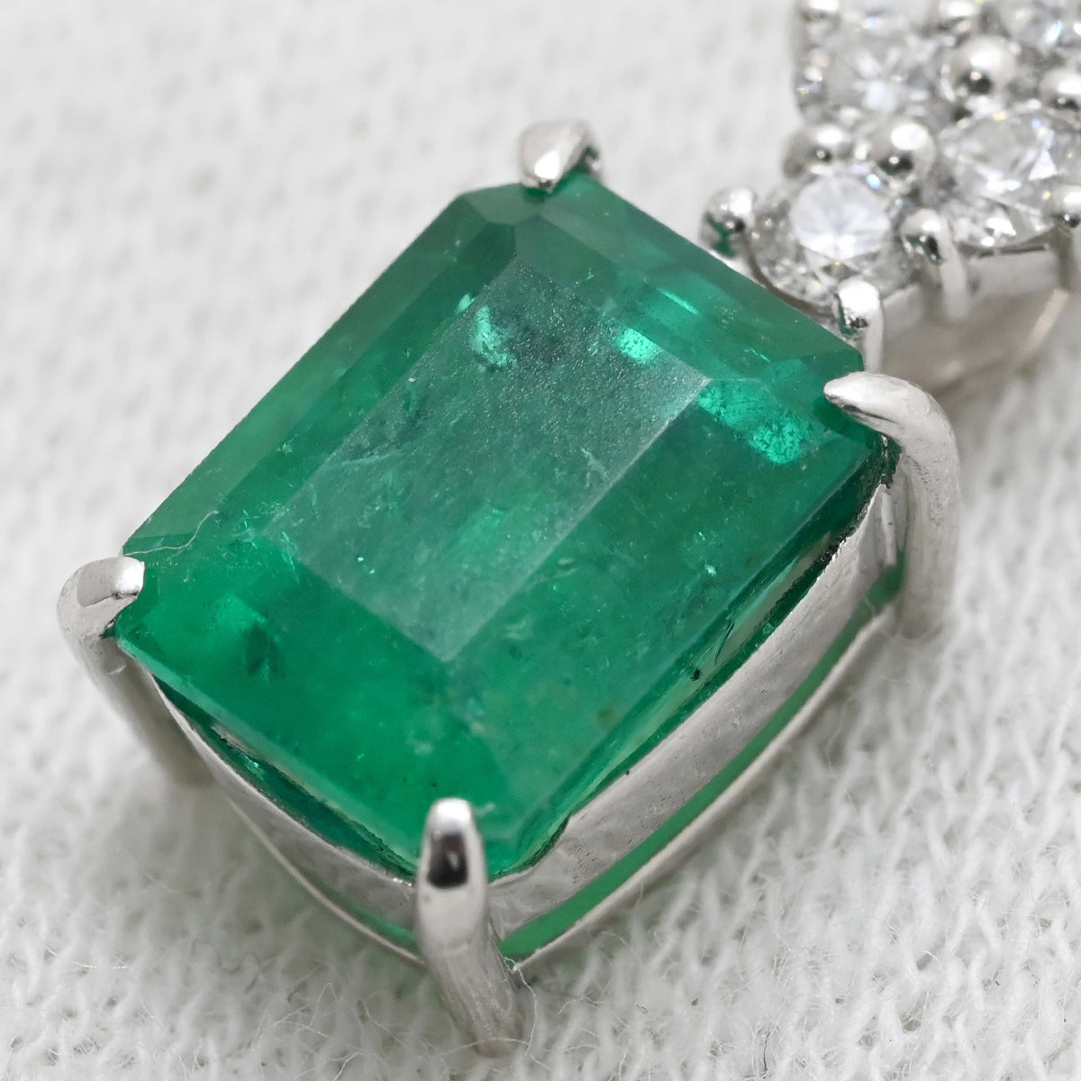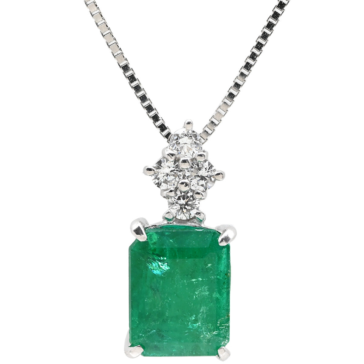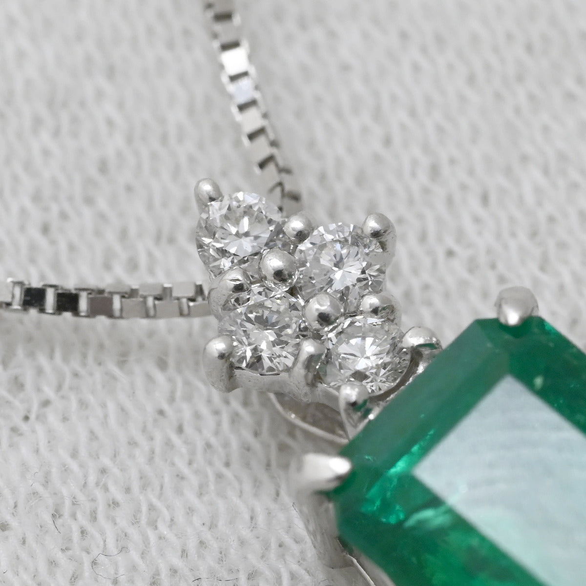 ノンブランド NON BRAND エメラルド ダイヤ ペンダント エメラルドグリーン×ホワイトゴールド ネックレス Au750 18K 18金 緑 パヴェダイヤ スクエア ベネチアンチェーン