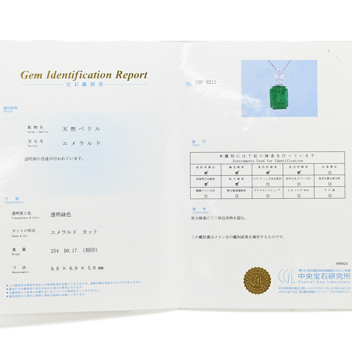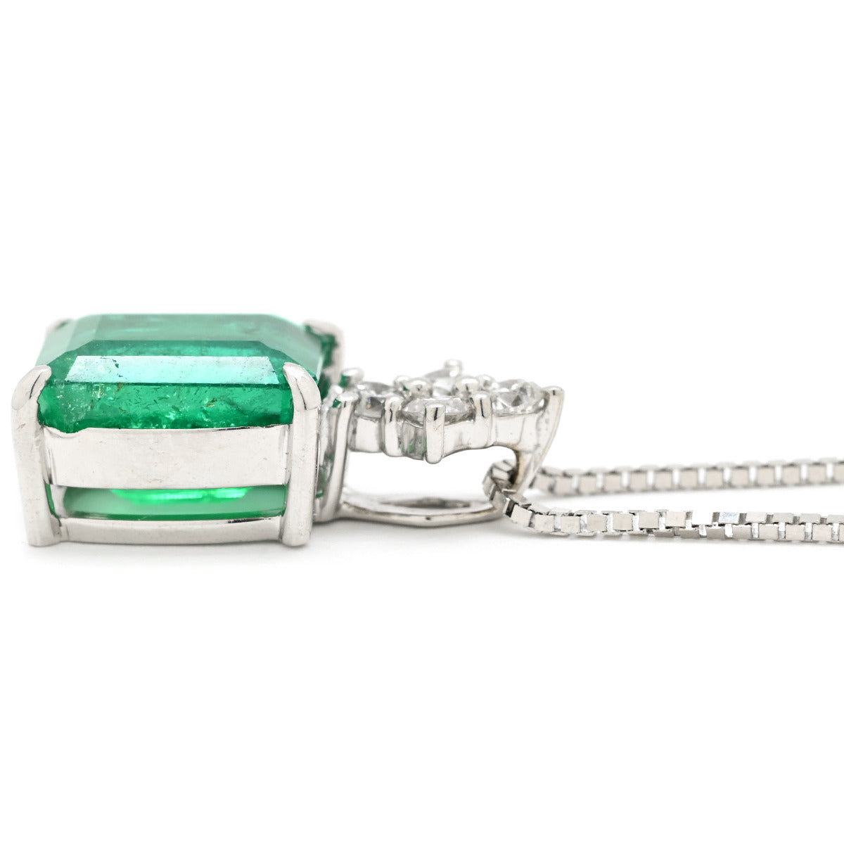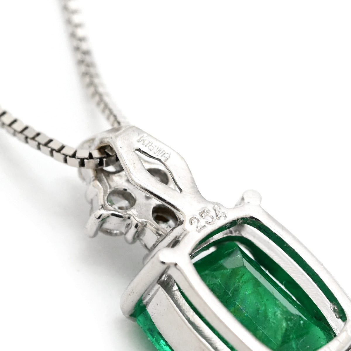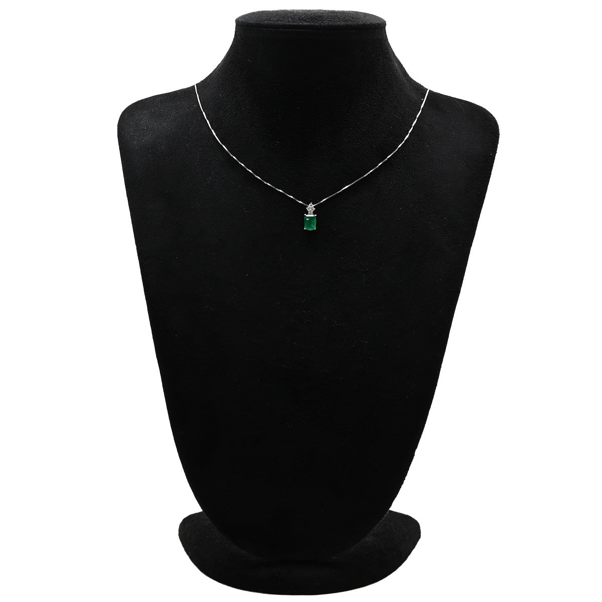 ノンブランド NON BRAND エメラルド ダイヤ ペンダント エメラルドグリーン×ホワイトゴールド ネックレス Au750 18K 18金 緑 パヴェダイヤ スクエア ベネチアンチェーン