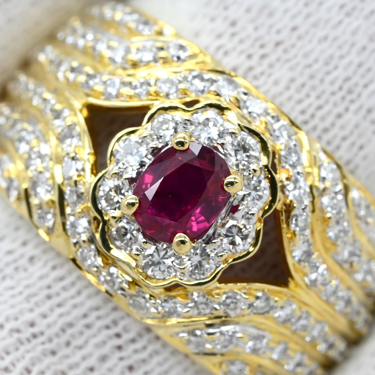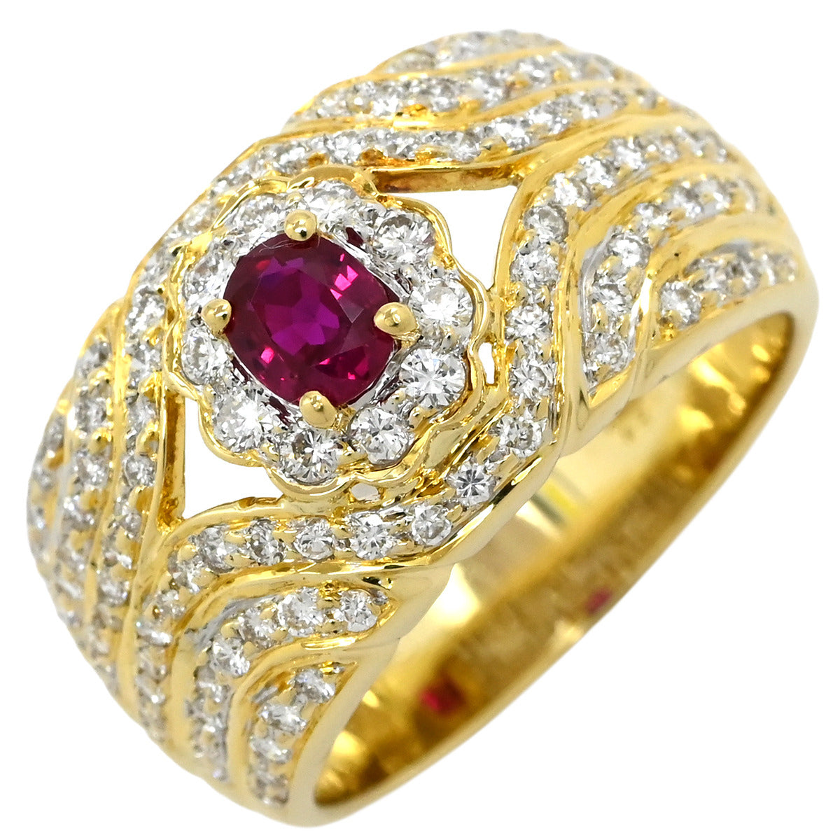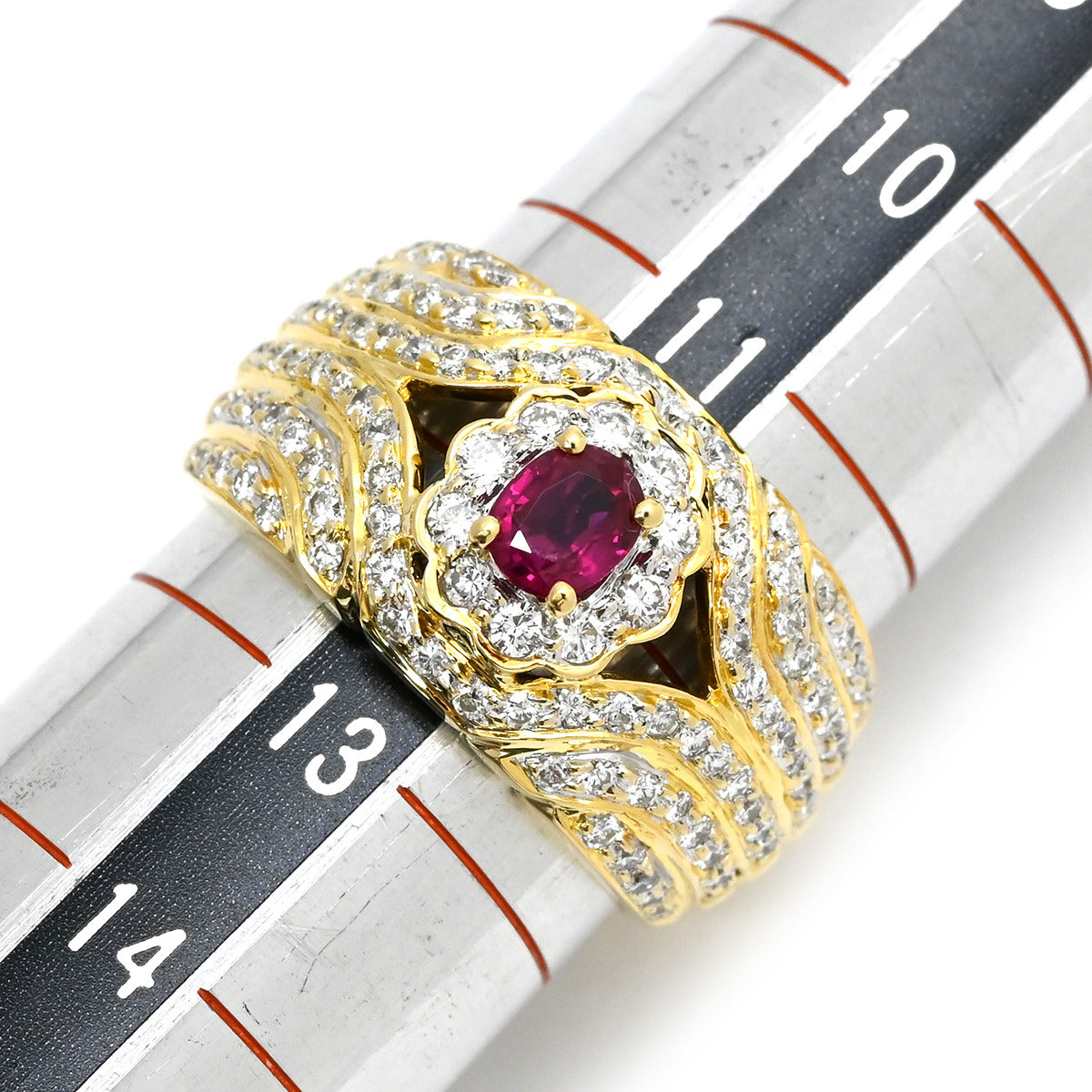 ノンブランド NON BRAND ルビー ダイヤリング イエローゴールド リング 指輪 レッド 赤 12号