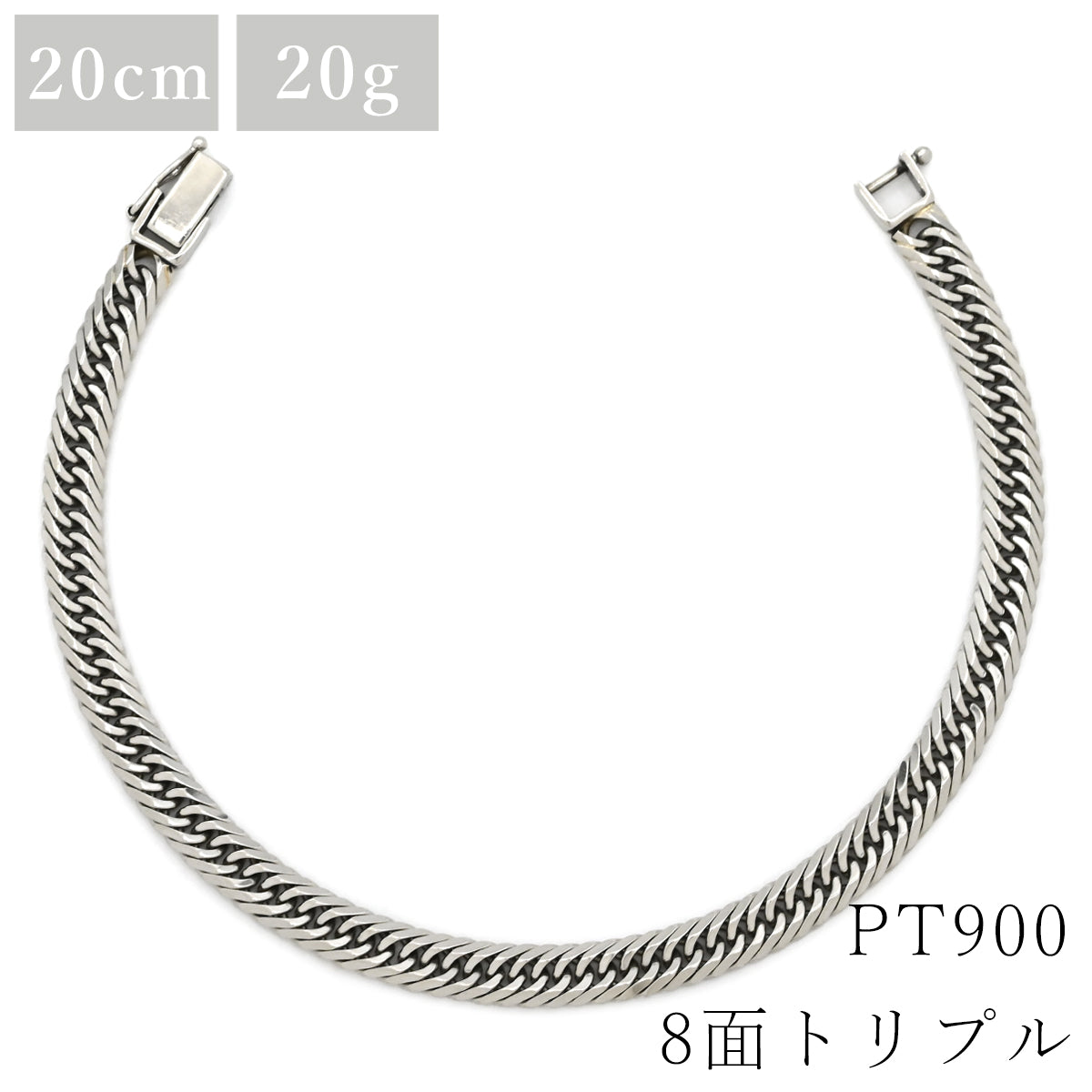 喜平 KIHEI PT900 20cm 20.5g 8面 トリプル プラチナシルバー Pt900 ブレスレット 造幣局検定マーク ※ショッピングローン対応していません