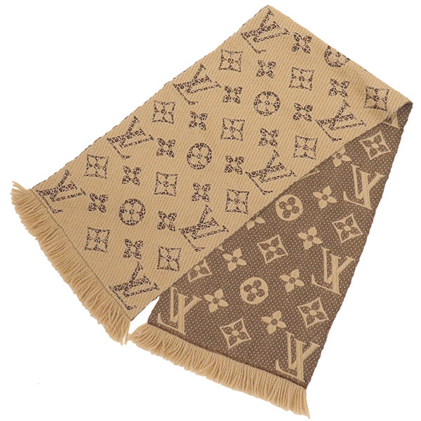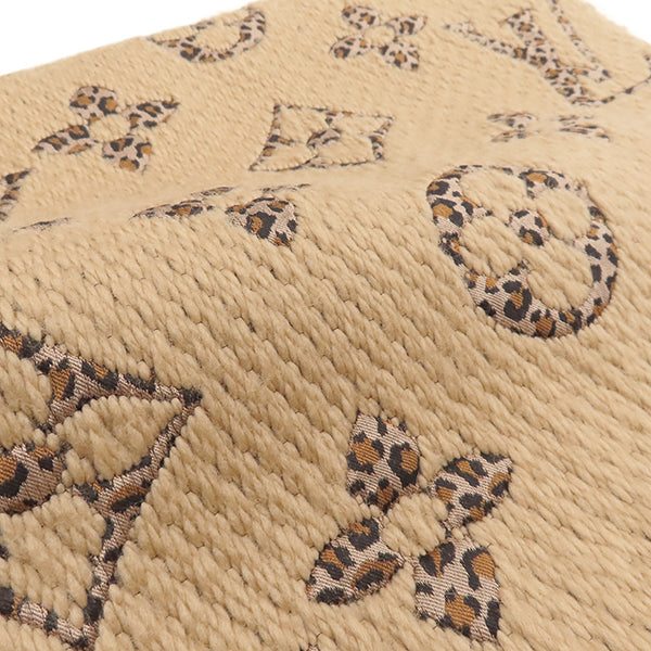 ルイヴィトン LOUIS VUITTON エシャルプ ジャイアント モノグラム ジャングル M75884 ベージュ ウール シルク マフラー ブラウン ヒョウ柄