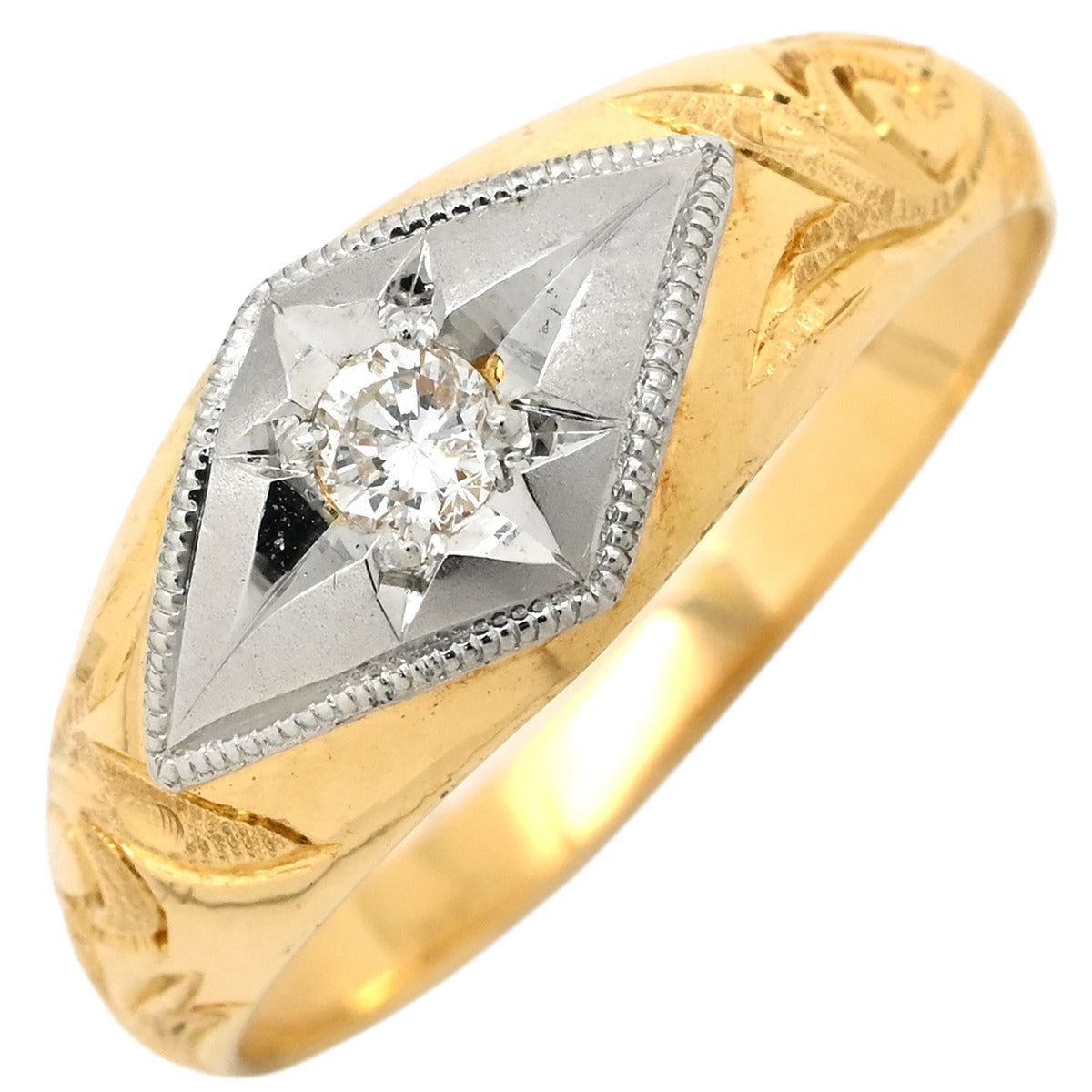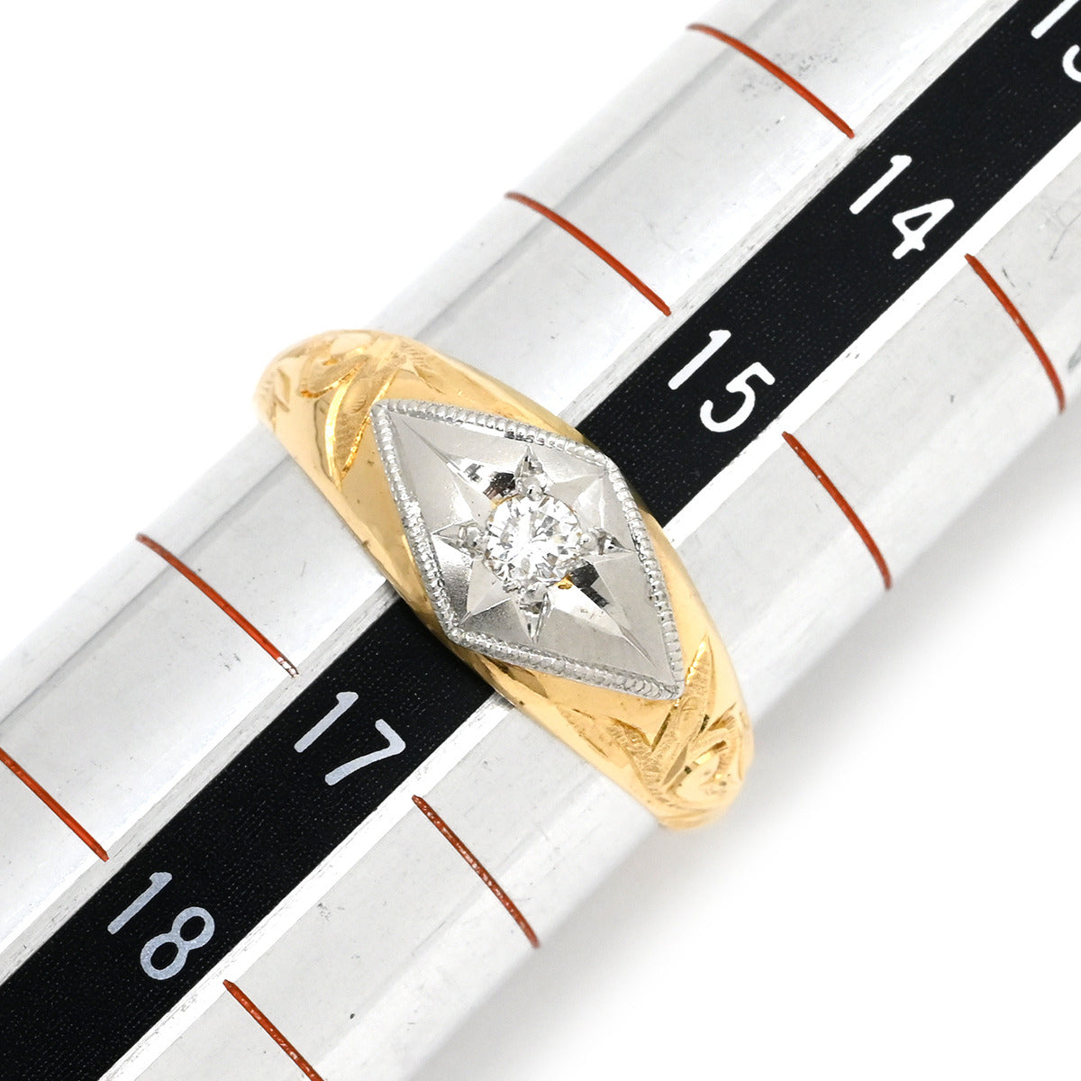 ノンブランド NON BRAND ダイヤリング イエローゴールド×プラチナシルバー リング 指輪 Pt900 イエローゴールド プラチナ コンビ 1P 1粒ダイヤ 菱形 ひし型 16号