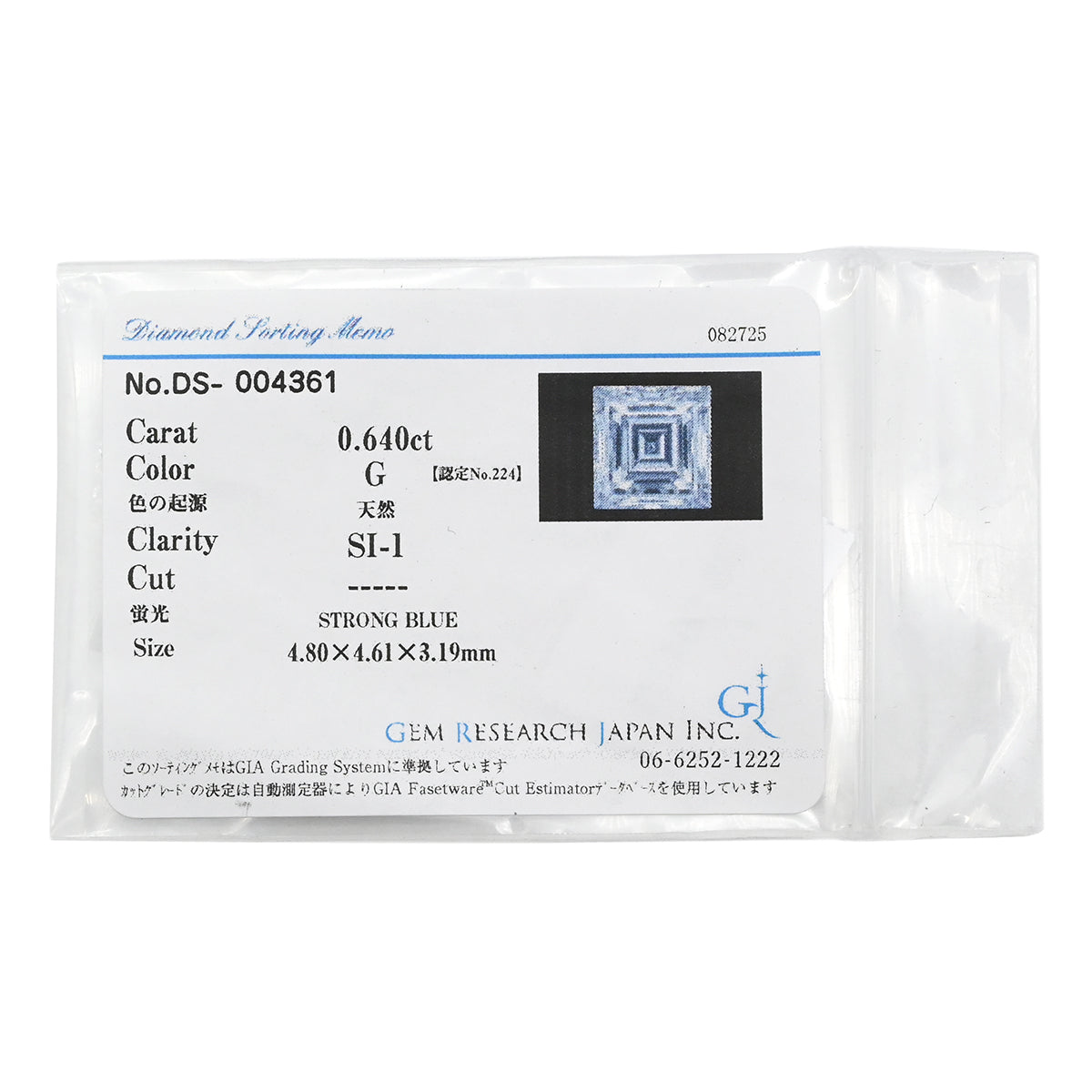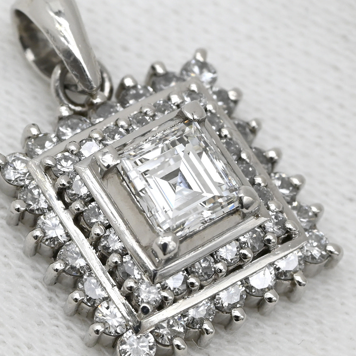 ノンブランド NON BRAND SI1 ダイヤモンド 0.6ct プラチナシルバー ペンダントトップ スクエアカット 四角 ネックレストップ ペンダントヘッド チャーム プラチナ900