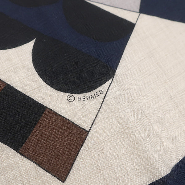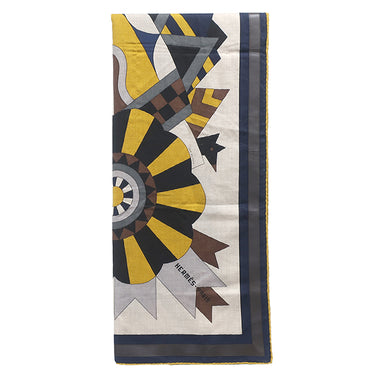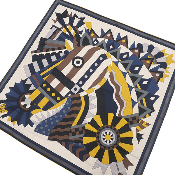エルメス HERMES ショール カレ140 CARRE カレジェアン ナチュラル×マリン×マスタード カシミヤ シルク ストール 【Cheval de Fete /シュヴァル ドゥ フェット】 タグ欠品