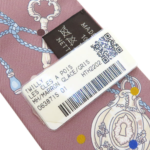 エルメス HERMES ツイリー マロングラッセ×グリス シルク スカーフ 【LES CLES A POIS/レ クレ ア ポア】