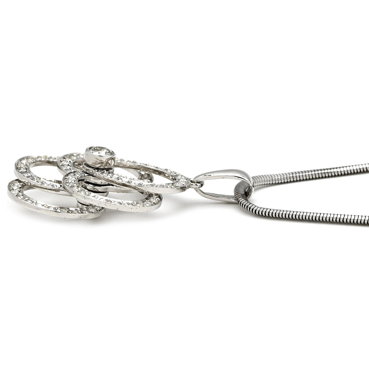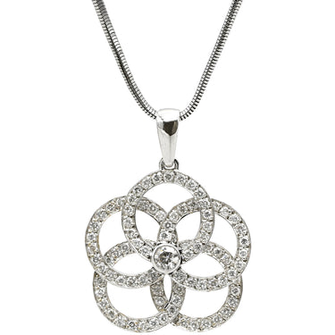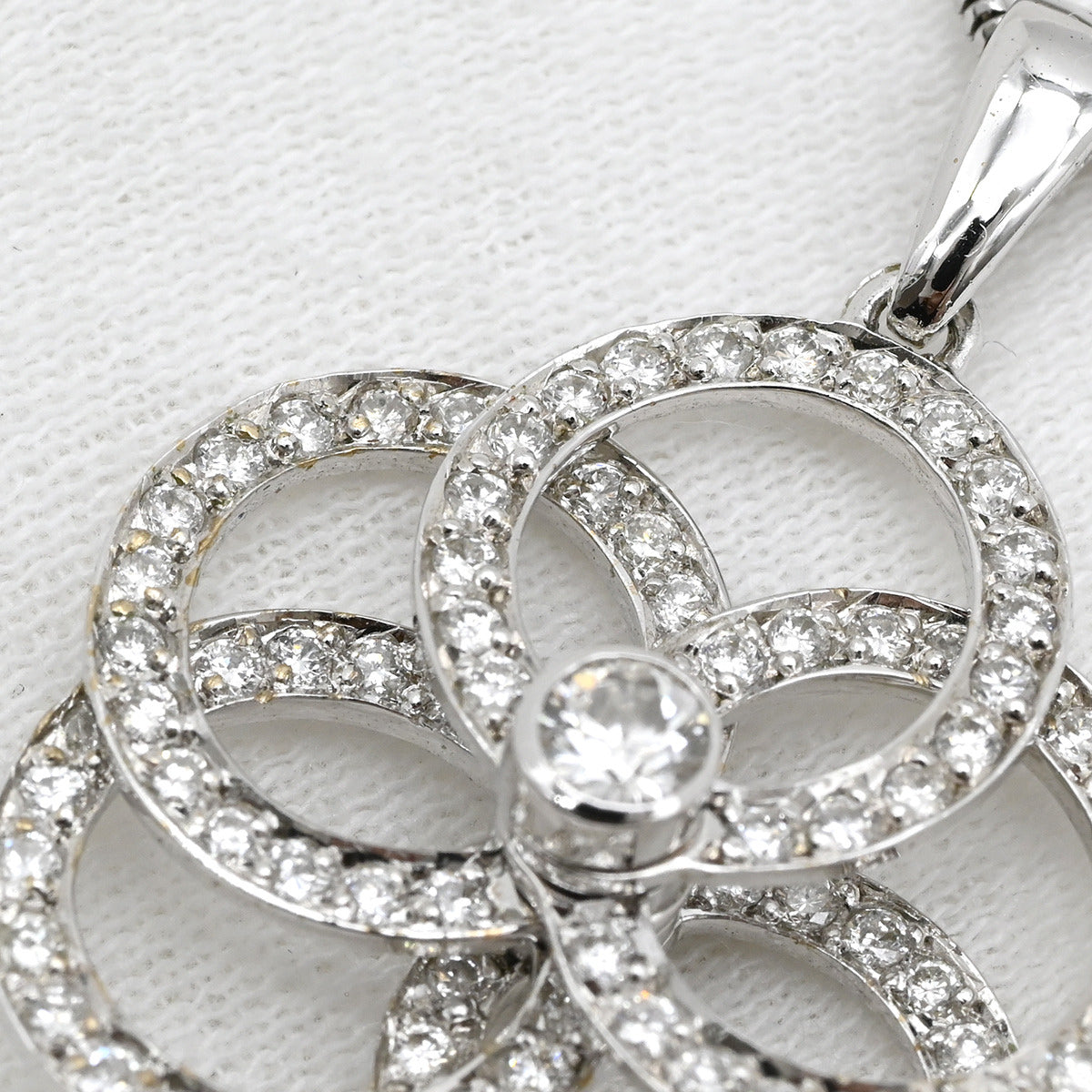 ノンブランド NON BRAND ダイヤ ペンダント ホワイトゴールド ネックレス K18WG Au750 18K 18金 サークルリング フラワーモチーフ 花