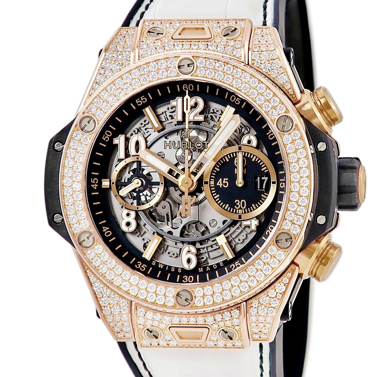 ウブロ HUBLOT ビッグバン ウニコ キングゴールド パヴェ 421.OX.1180.RX.1704 自動巻き メンズ K18KG×Ti 純正ダイヤ デイト