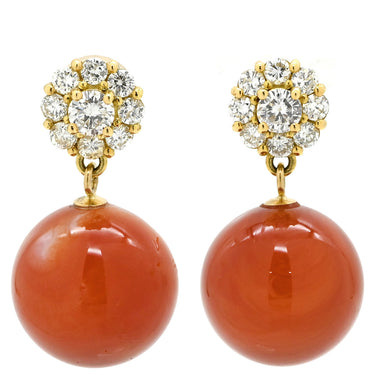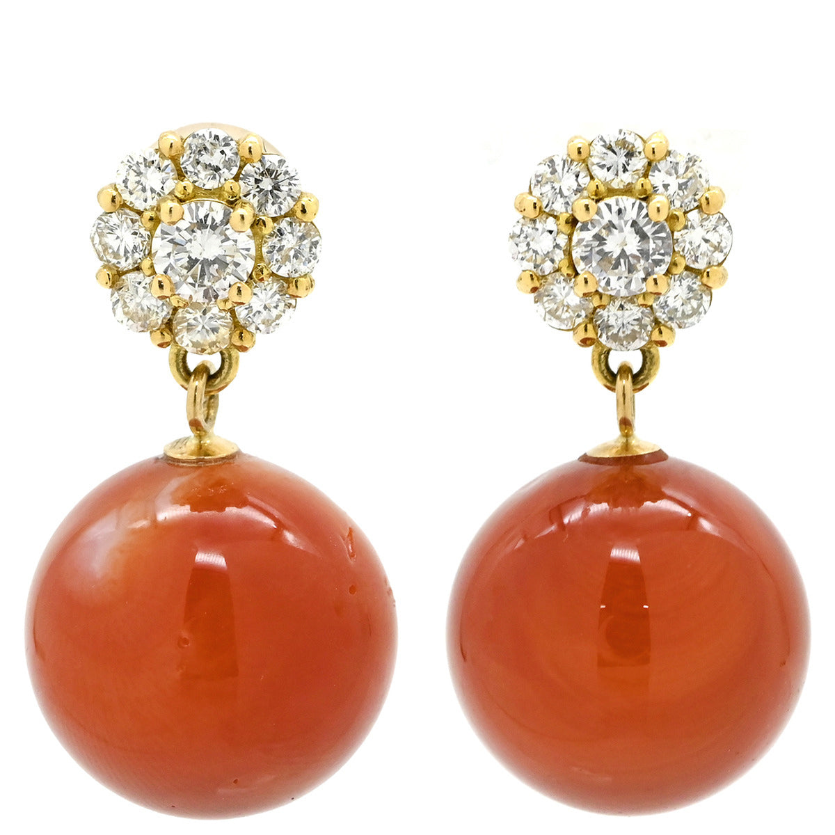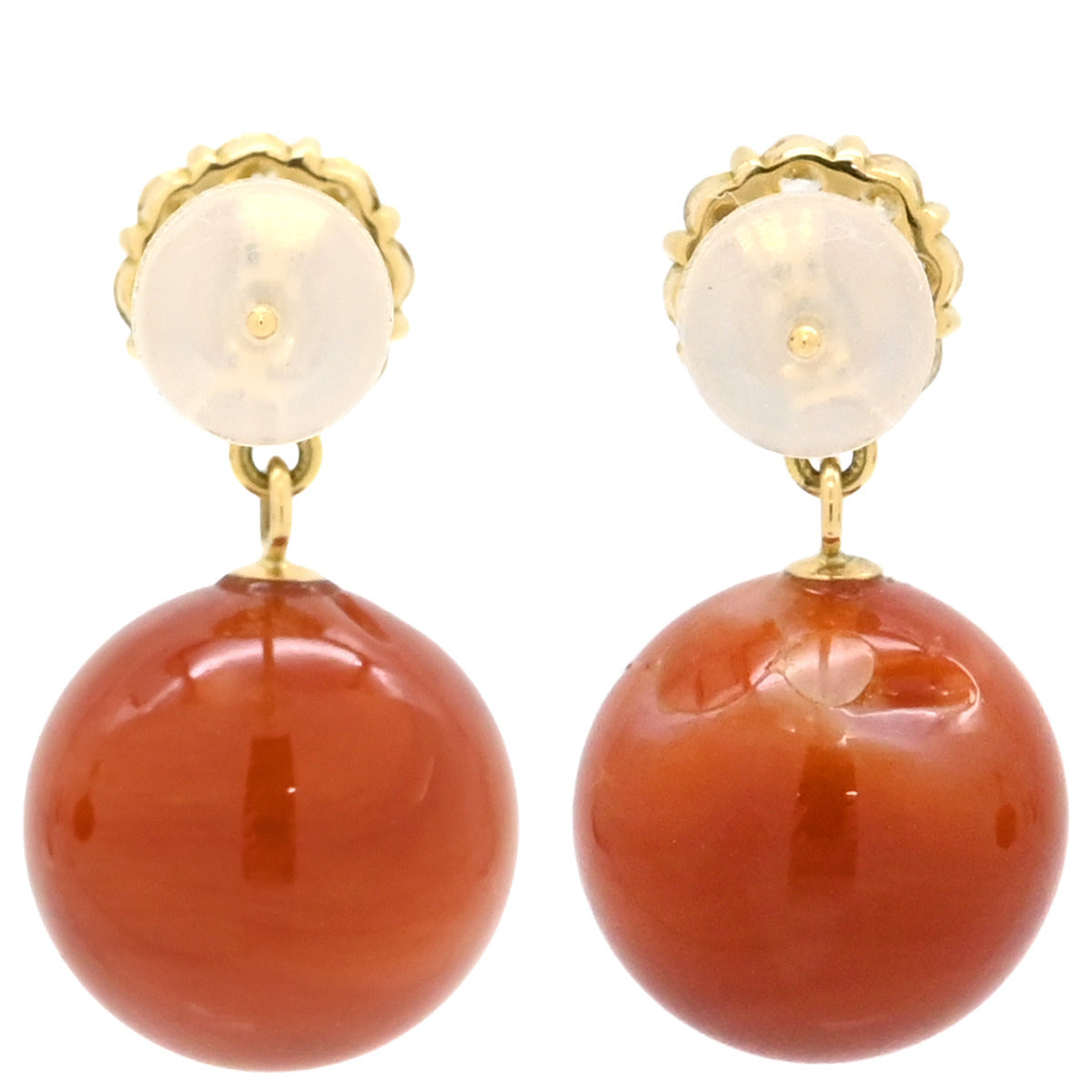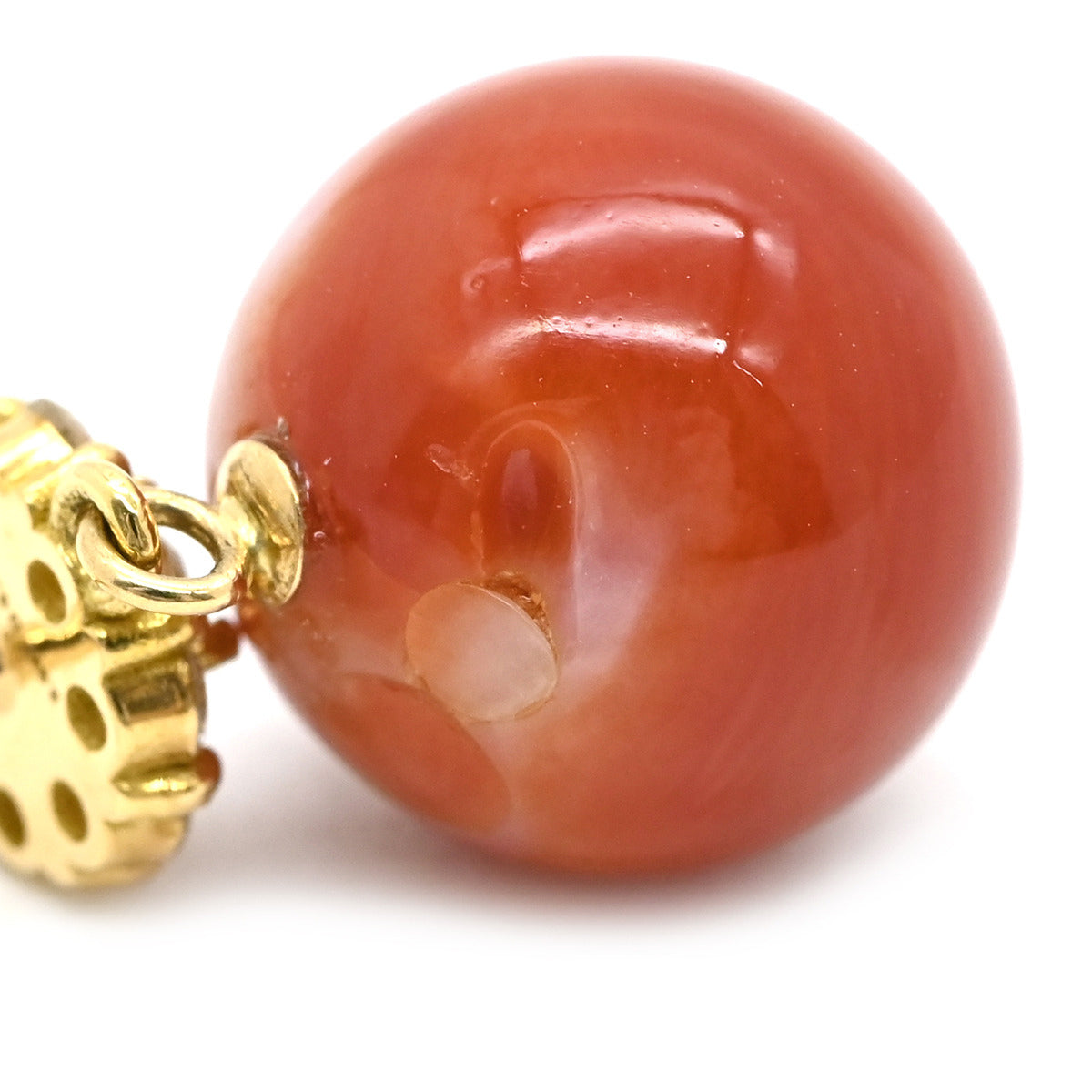 ノンブランド NON BRAND 珊瑚 サンゴ ダイヤピアス イエローゴールド ピアス 1P 1粒さんご