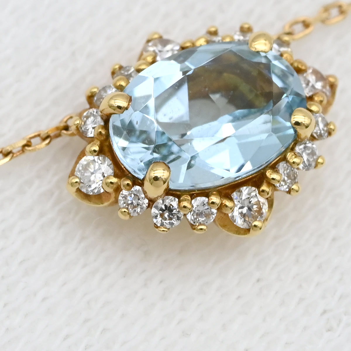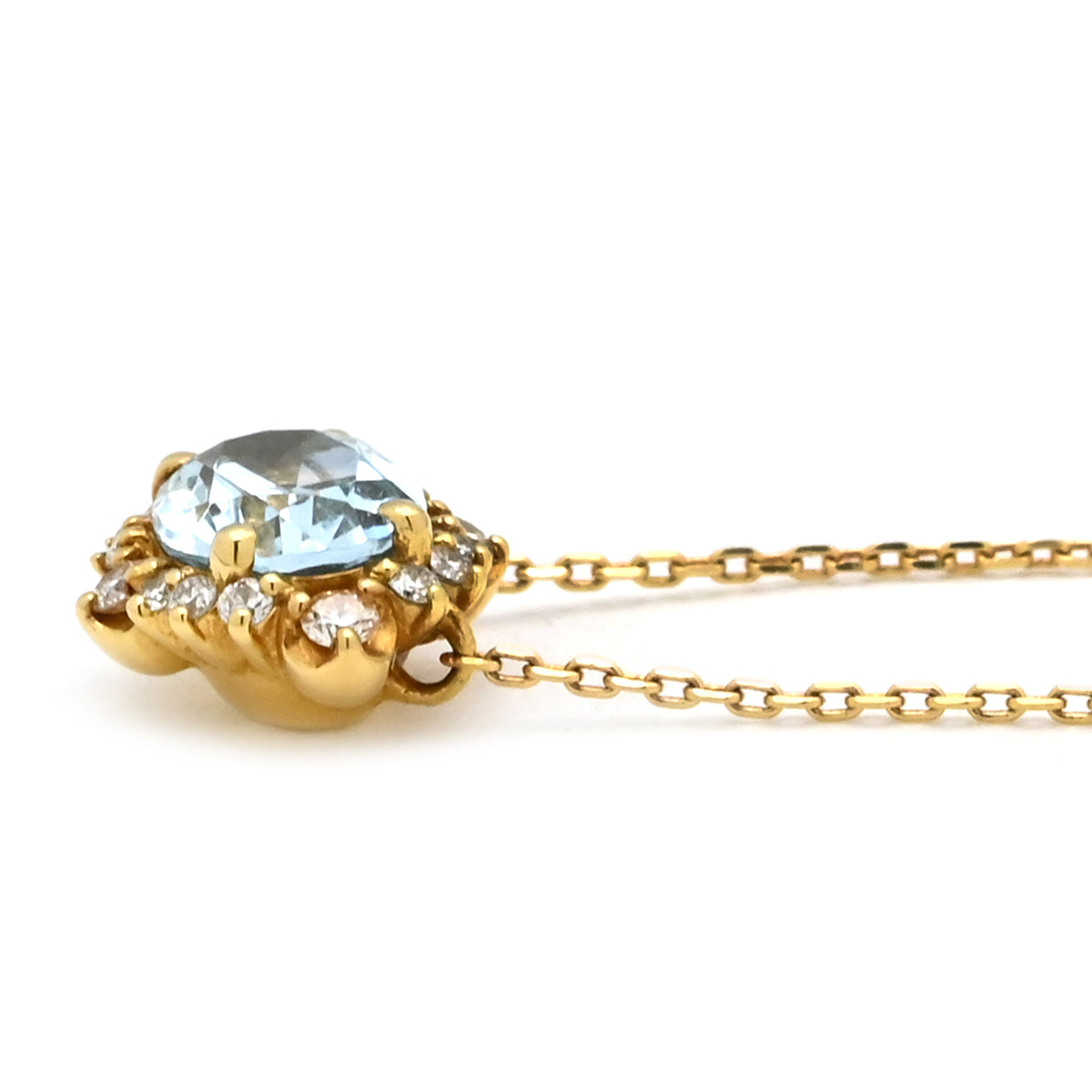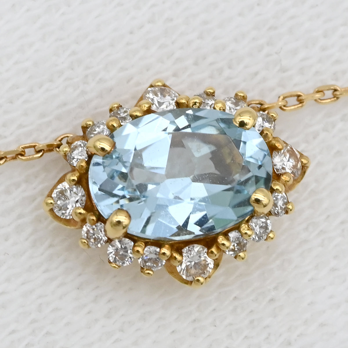ポンテヴェキオ Ponte Vecchio アクアマリン イエローゴールド K18YG アクアマリン ダイヤモンド ネックレス Au750 18K 18金 ダイヤモンド ペンダント