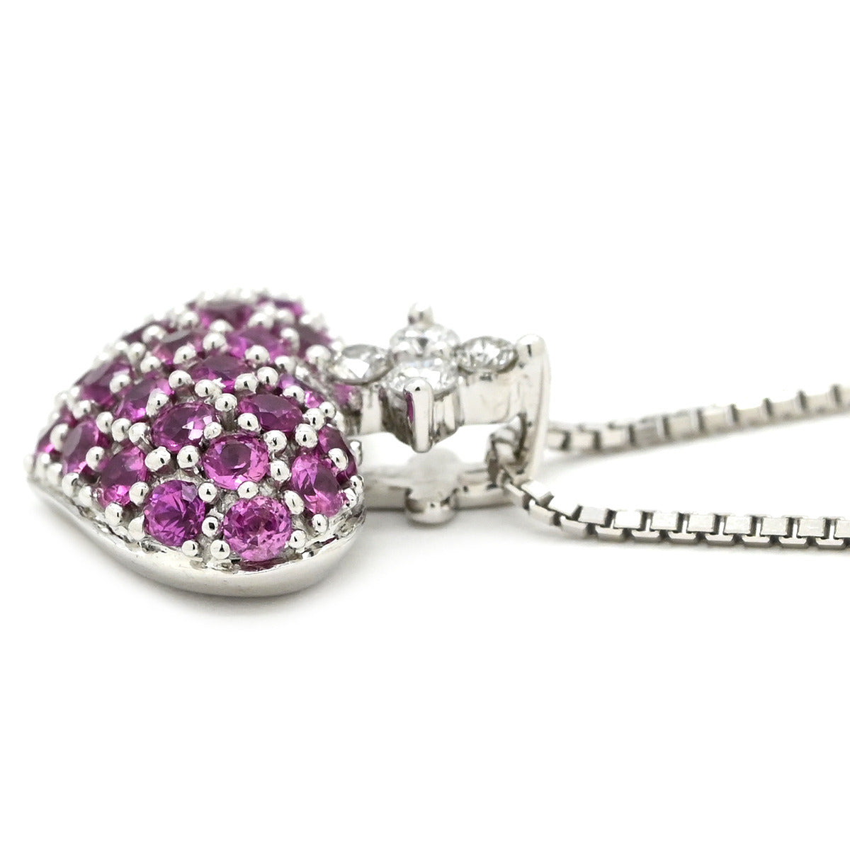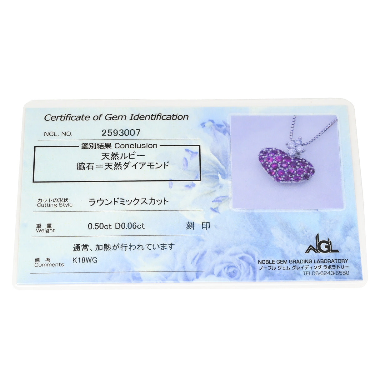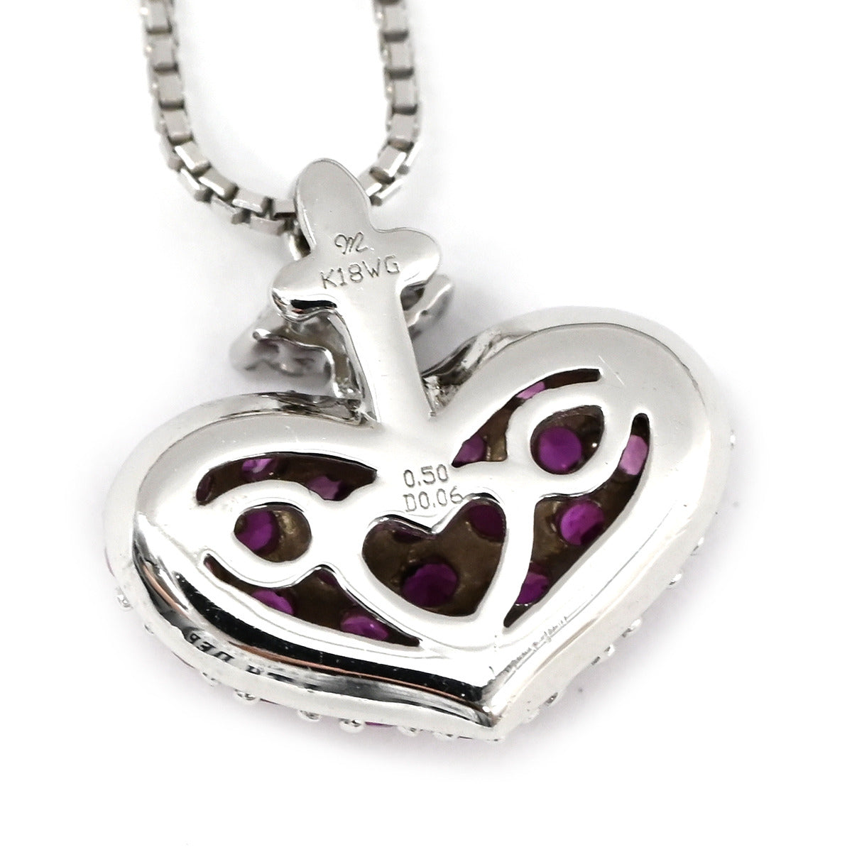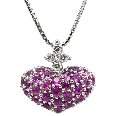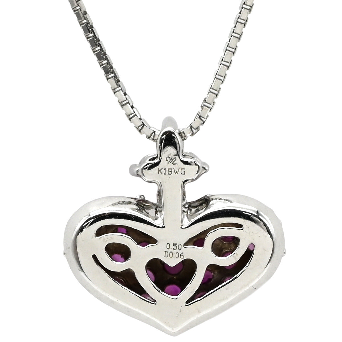 ノンブランド NON BRAND ルビー ダイヤペンダント ホワイトゴールド ネックレス ダイヤモンド 赤 ハートモチーフ ラウンドミックスカット