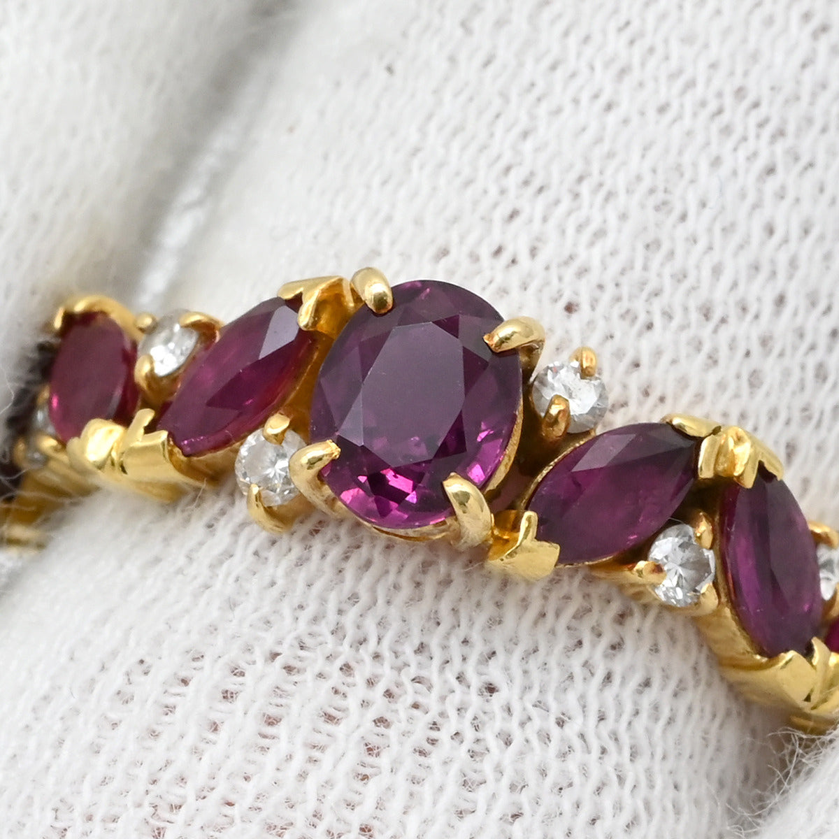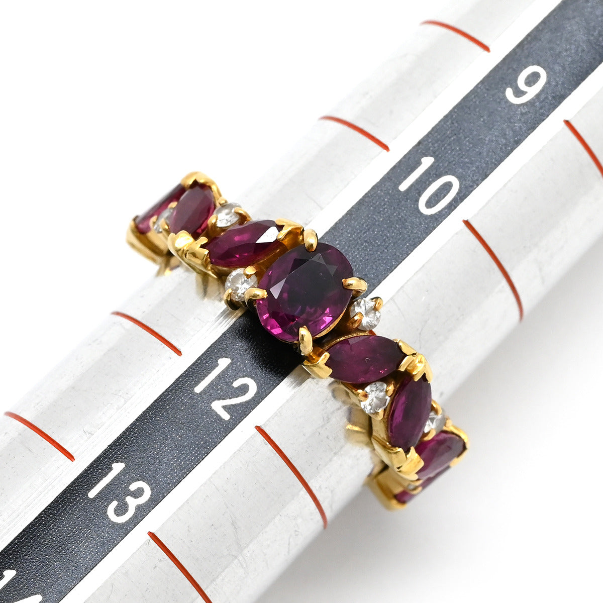 ノンブランド NON BRAND ルビー ダイヤリング イエローゴールド リング 指輪 レッド 赤 オーバルミックスカット 18K 750 YG 11号