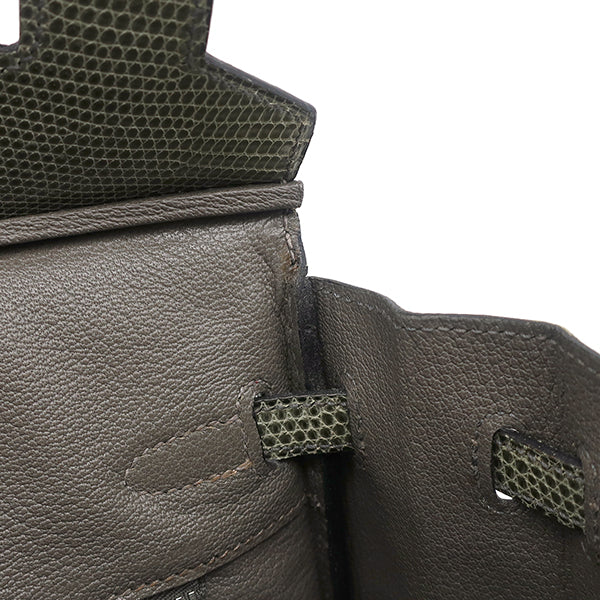 エルメス HERMES バーキン25 グリフォンセ リザード ハンドバッグ シルバー金具