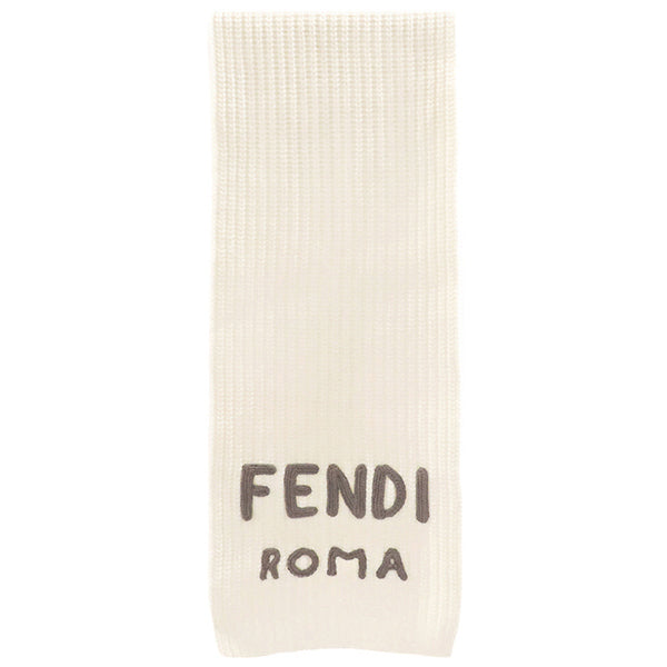 フェンディ FENDI ロゴ ニット FXT352 クリーム ウール マフラー アイボリー 白