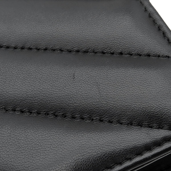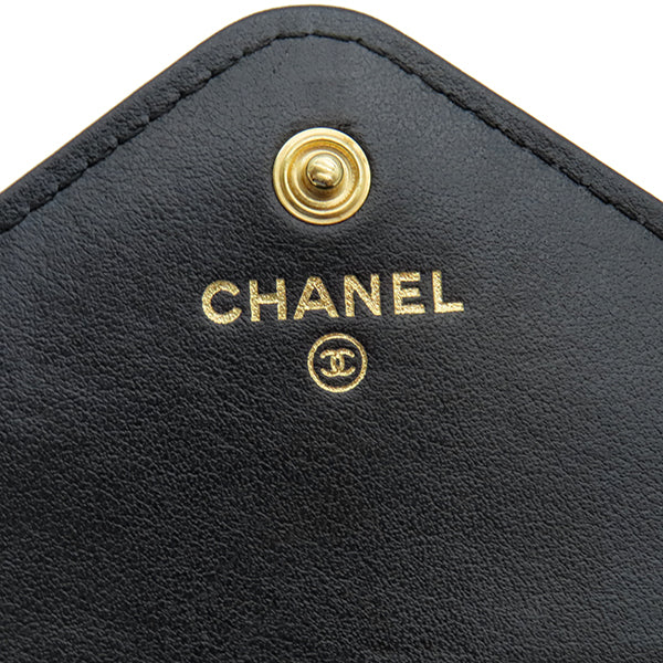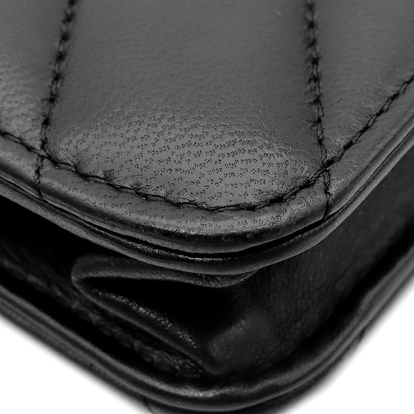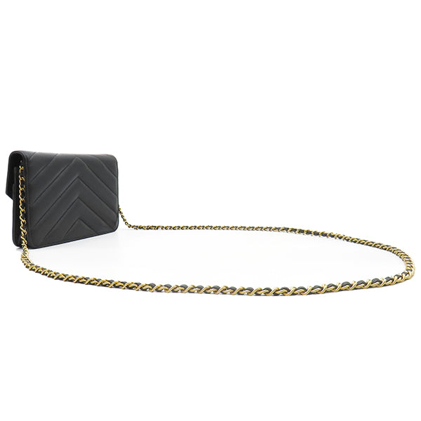 シャネル CHANEL シェブロン Vステッチ ブラック レザー ラムスキン チェーンウォレット ゴールド金具 チェーンショルダー CCボタン 黒