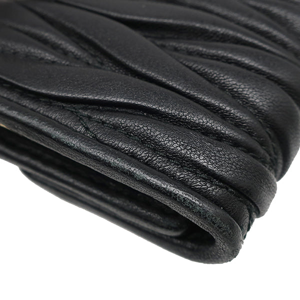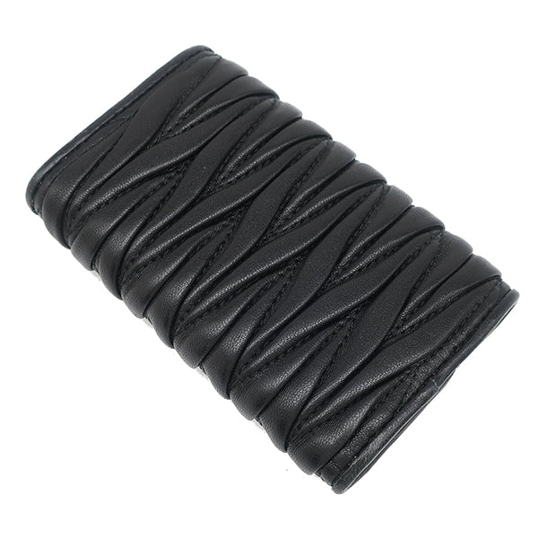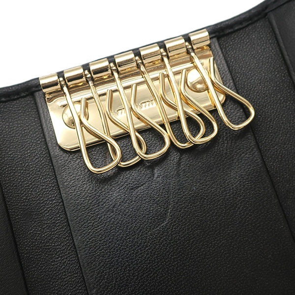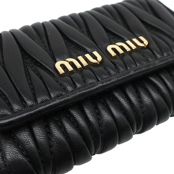 ミュウミュウ MIU MIU マテラッセ キーケース 5PG222 N88 ブラック レザー キーケース ゴールド金具 黒 メタルロゴ 6連 6本 MATELASSE