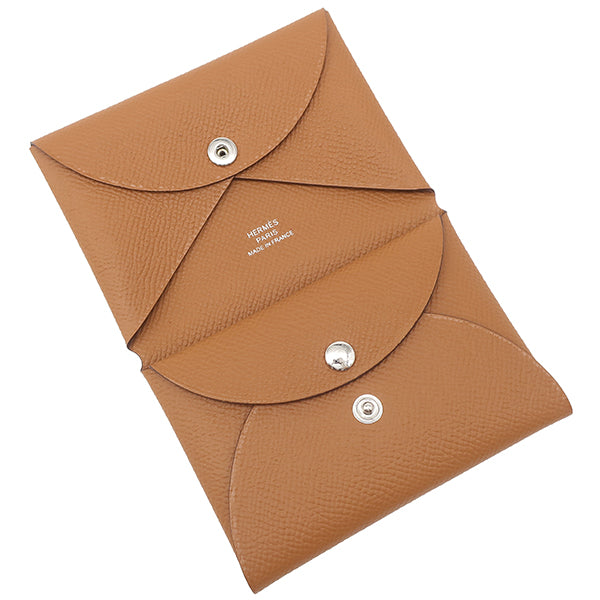 エルメス HERMES カルヴィ デュオ ゴールド ヴォーエプソン カードケース シルバー金具 新品 未使用 茶 フラグメントケース