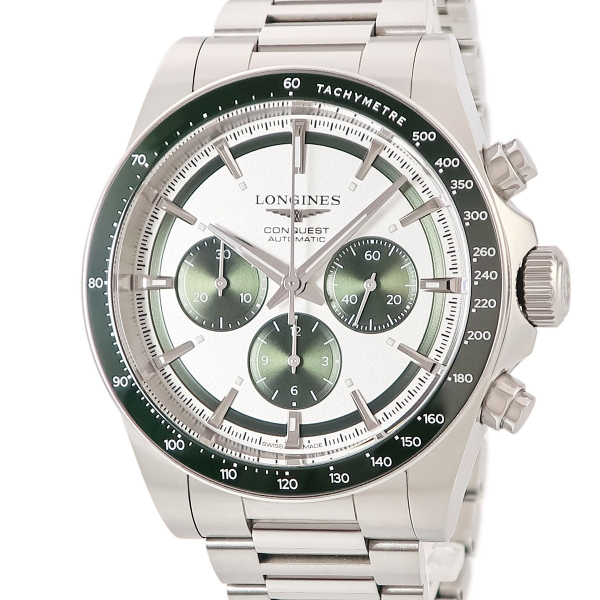 ロンジン LONGINES コンクエスト クロノグラフ L3.835.4.02.6 自動巻き メンズ シルバー グリーン スモールセコンド