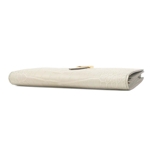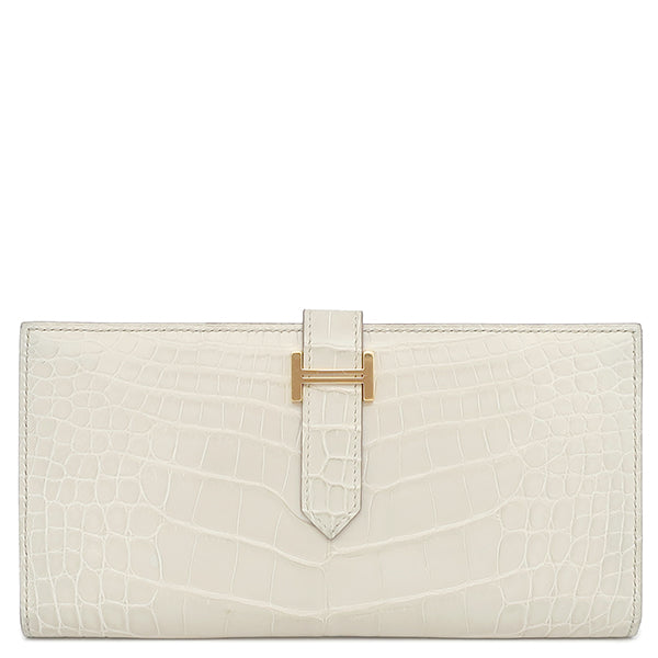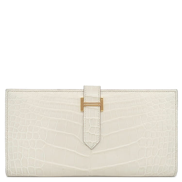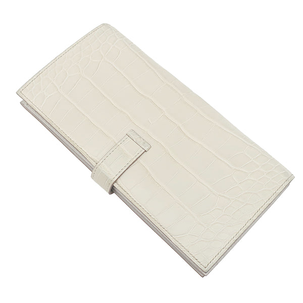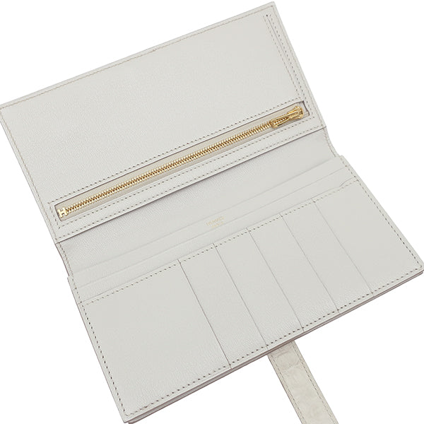 エルメス HERMES ベアンスフレ ベトン アリゲーター 長財布 ゴールド金具 オフホワイト 二つ折り財布 マット