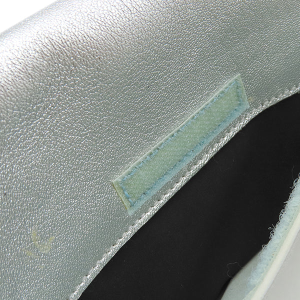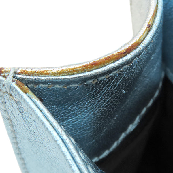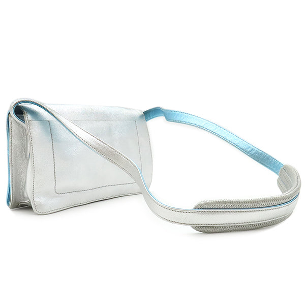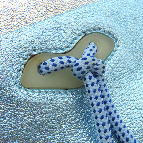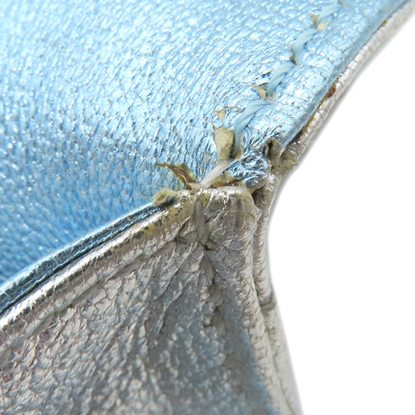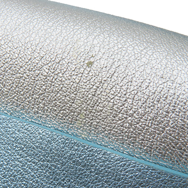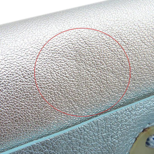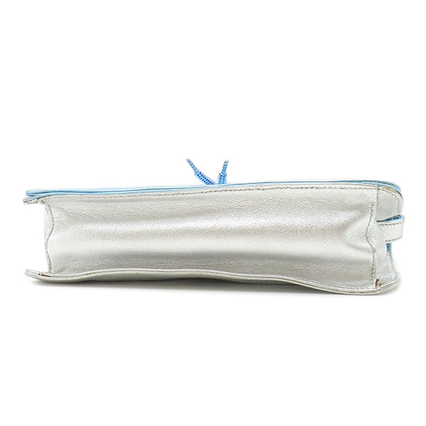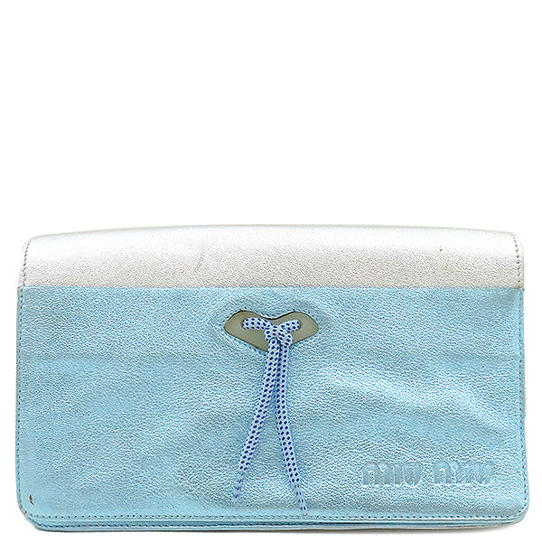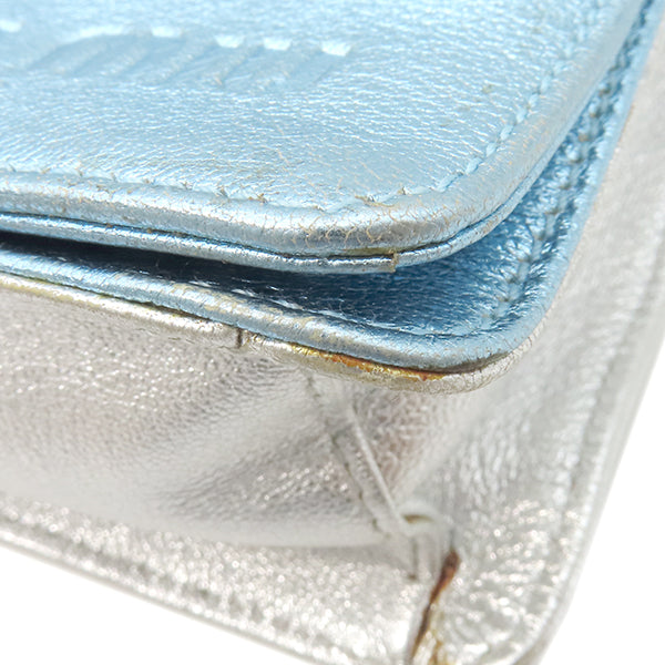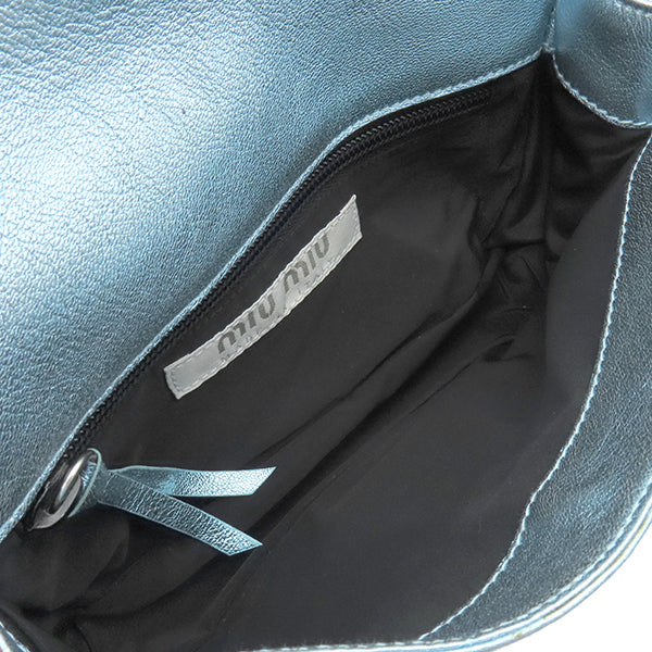 ミュウミュウ MIU MIU ロゴエンボス ショルダ― メタリックブルー×シルバー レザー ショルダーバッグ バイカラー 肩掛け