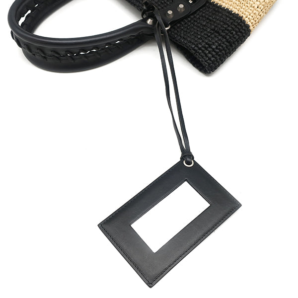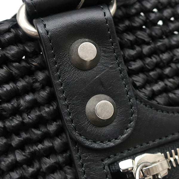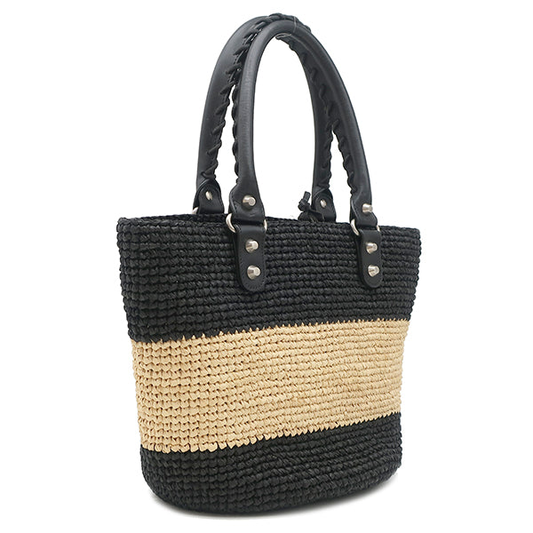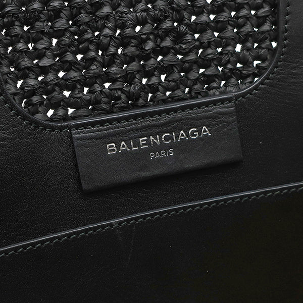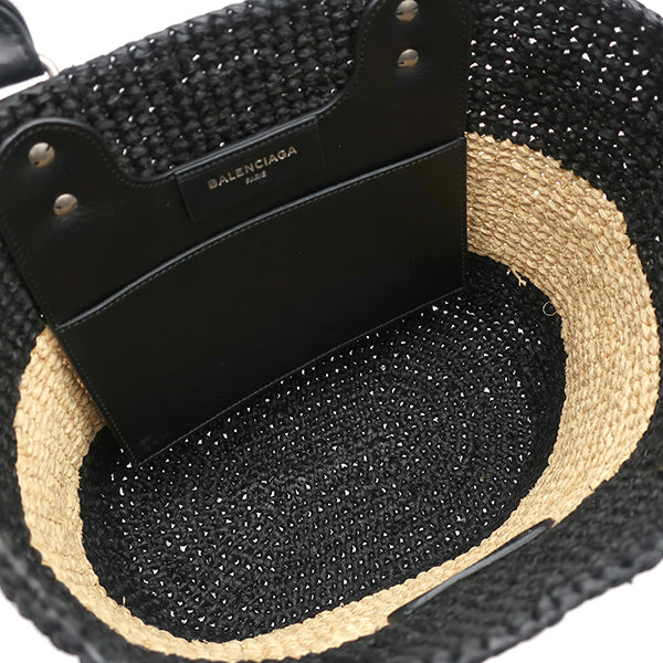 バレンシアガ BALENCIAGA パニエ XS 466498 ブラック×ベージュ ラフィア カーフ トートバッグ ガンメタル金具 カゴハンドバッグ