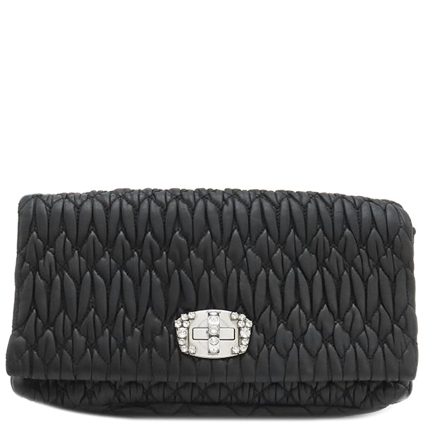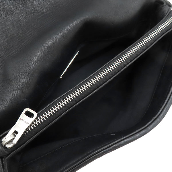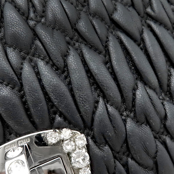 ミュウミュウ MIU MIU マテラッセ クリスタル バッグ ブラック レザー 2WAYバッグ シルバー金具 黒 チェーンストラップ ショルダー
