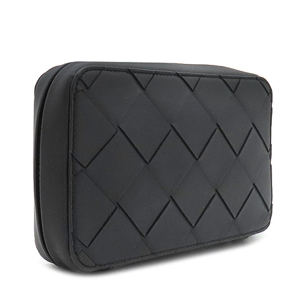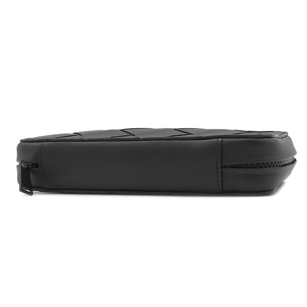 ボッテガヴェネタ BOTTEGA VENETA マキシ イントレチャート ブラック レザー ポーチ マットブラック金具 黒 セカンドバッグ トラベルポーチ