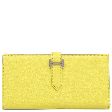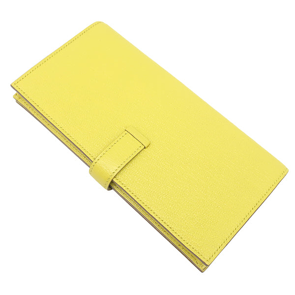 エルメス HERMES ベアンスフレ スフレ シェーブル 長財布 シルバー金具 黄色 二つ折り財布