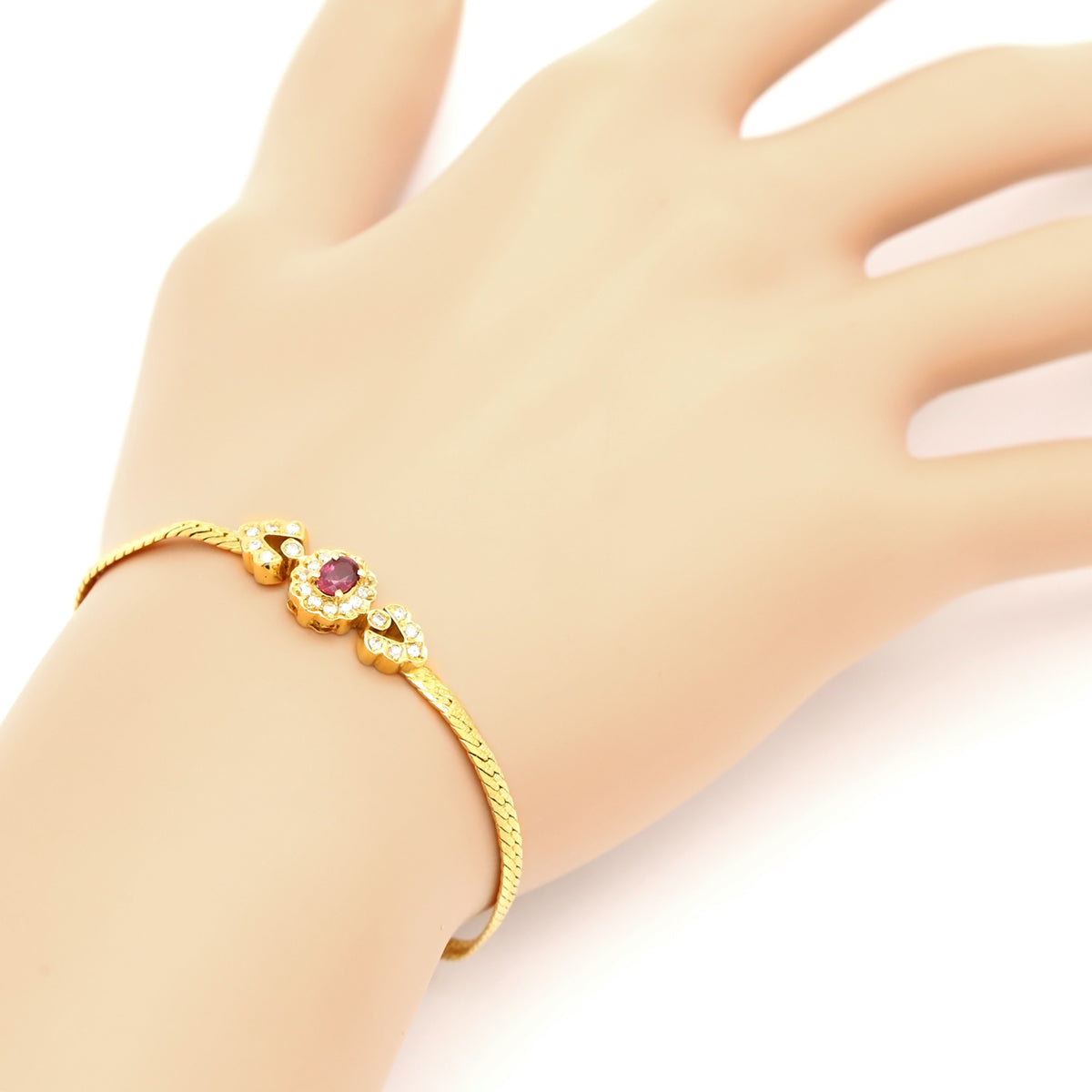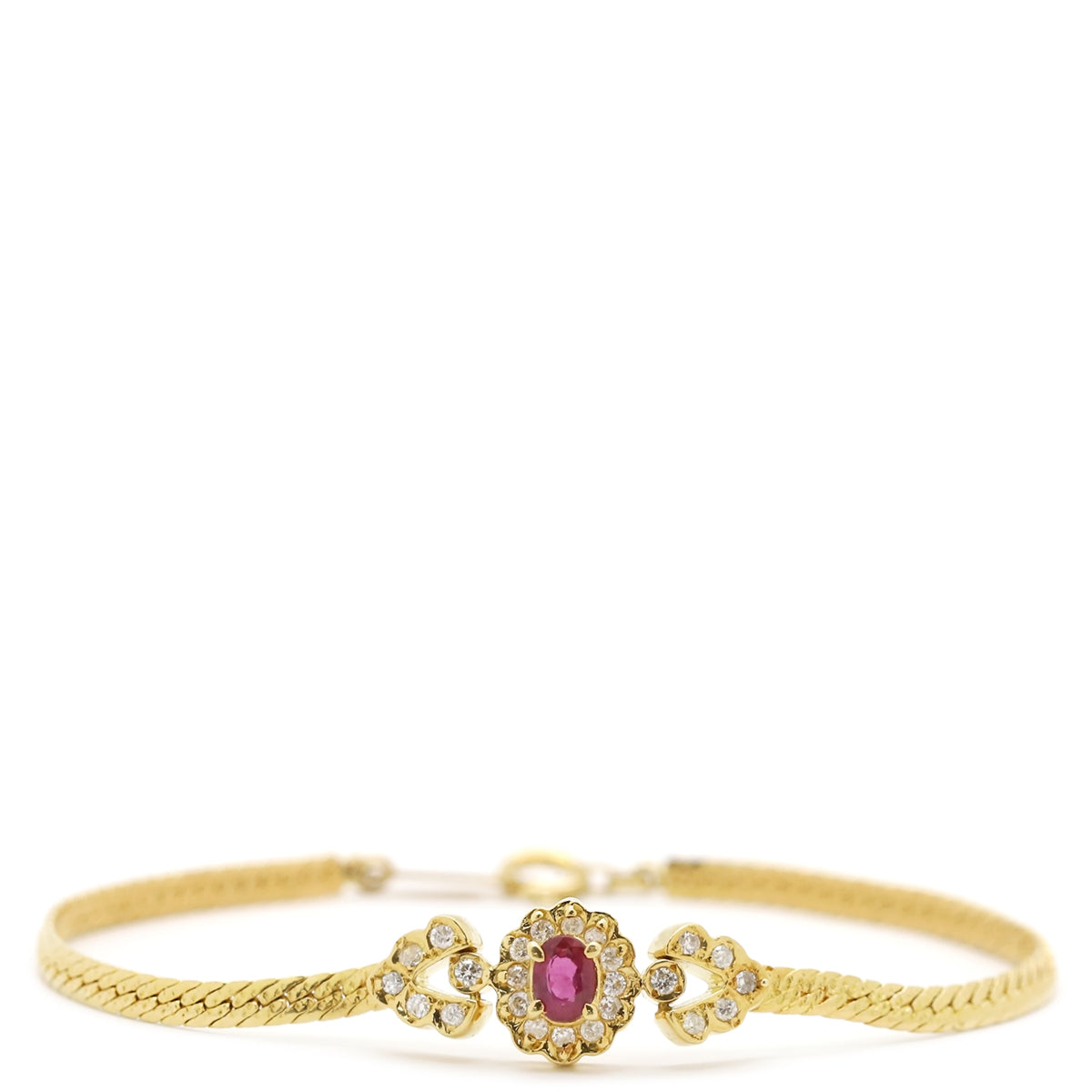 ノンブランド NON BRAND イエローゴールド ブレスレット Au750 18K ルビー 赤 ダイヤ パヴェ オーバル フラワーモチーフ 花形 フラットチェーン