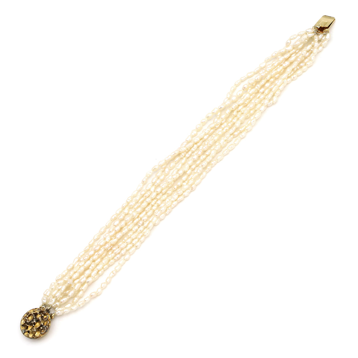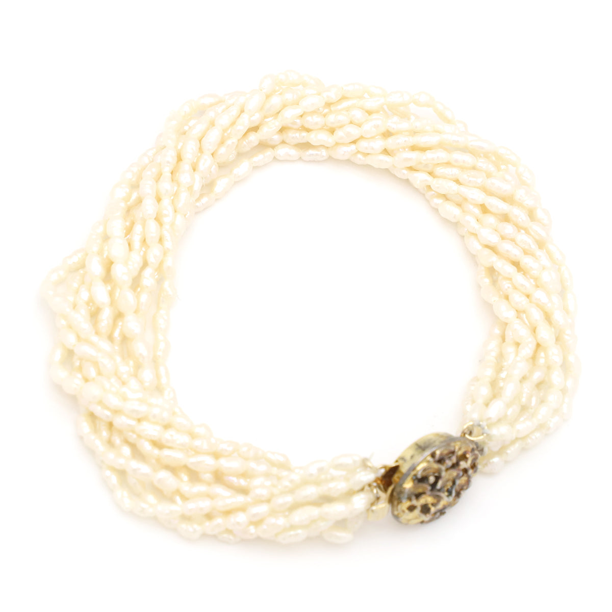 ノンブランド NON BRAND 淡水パール 10連 ゴールドXパールホワイト ブレスレット