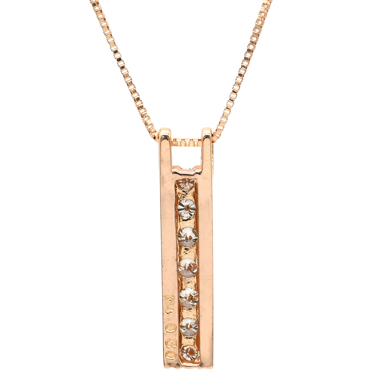 ノンブランド NON BRAND ダイヤ ペンダント ピンクゴールド ネックレス 14K PG 縦型 バータイプ ダイヤ 7P 7粒 7石 0.30ct