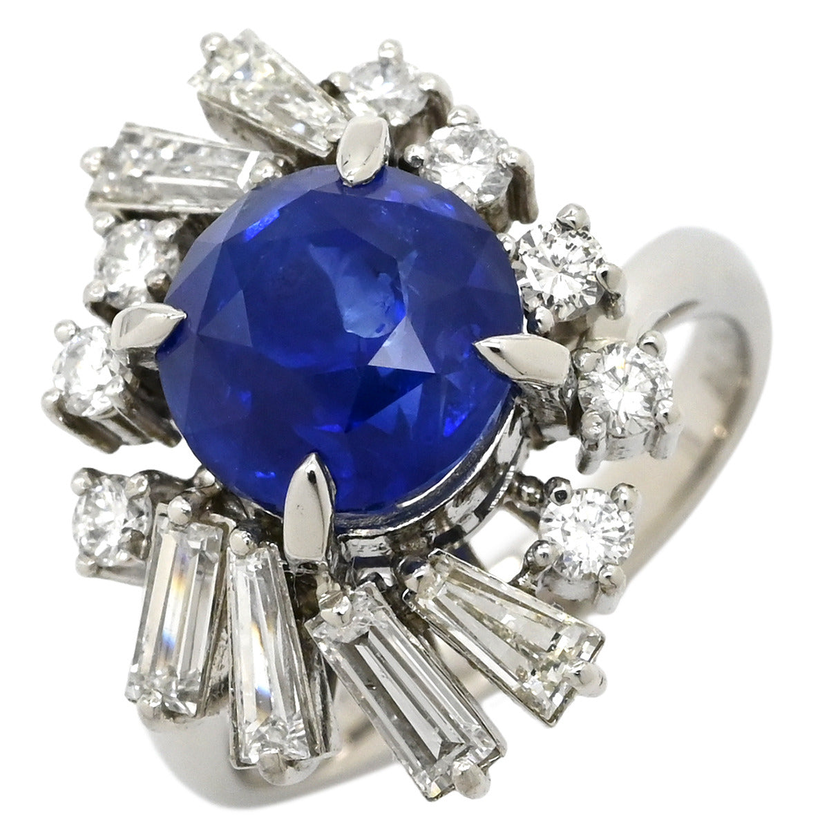 ノンブランド NON BRAND ブルーサファイア ダイヤリング プラチナシルバー リング 指輪 ロイヤルブルー 青 9号