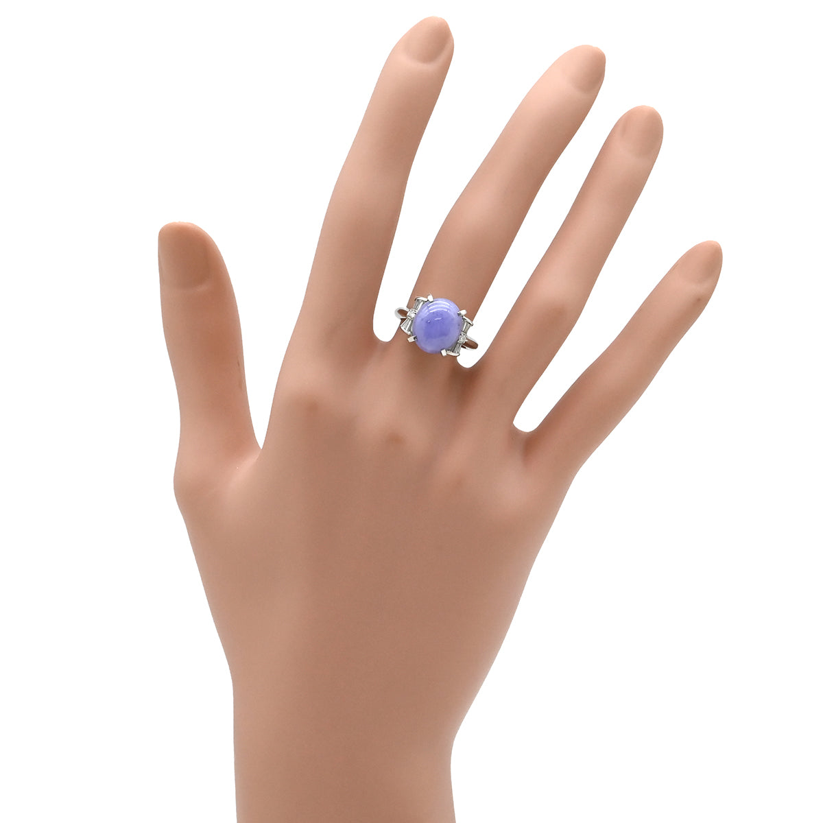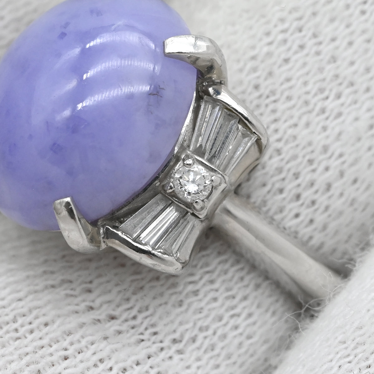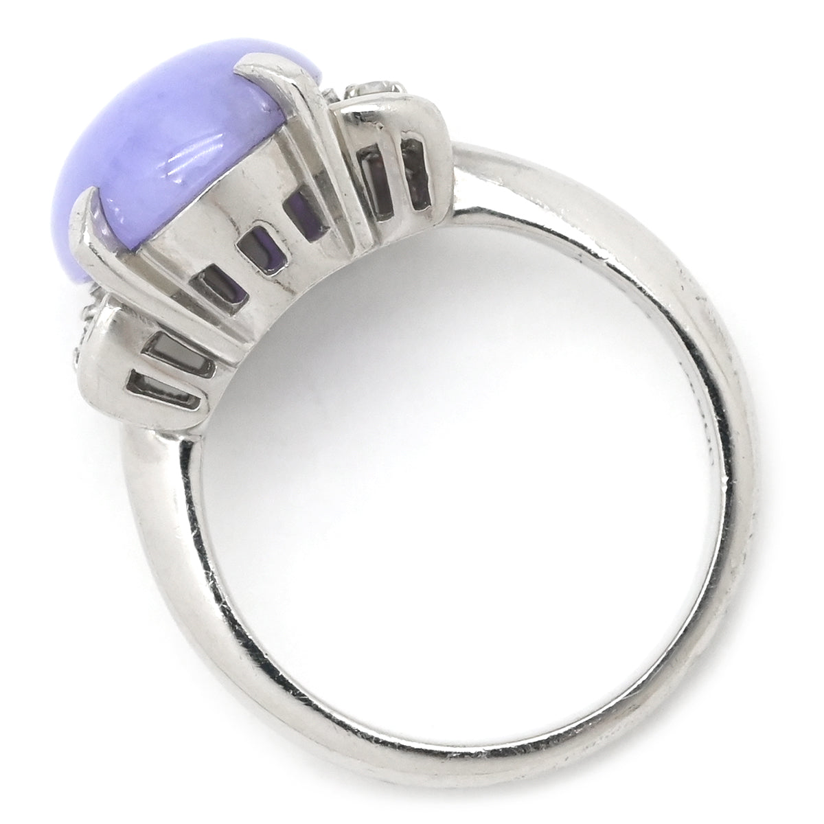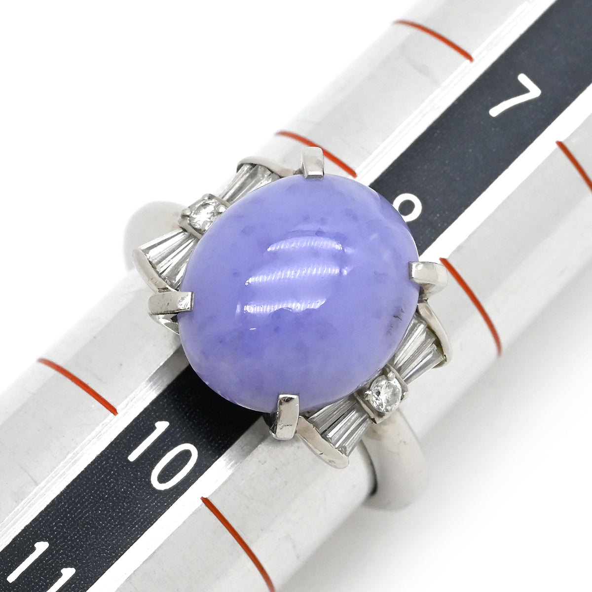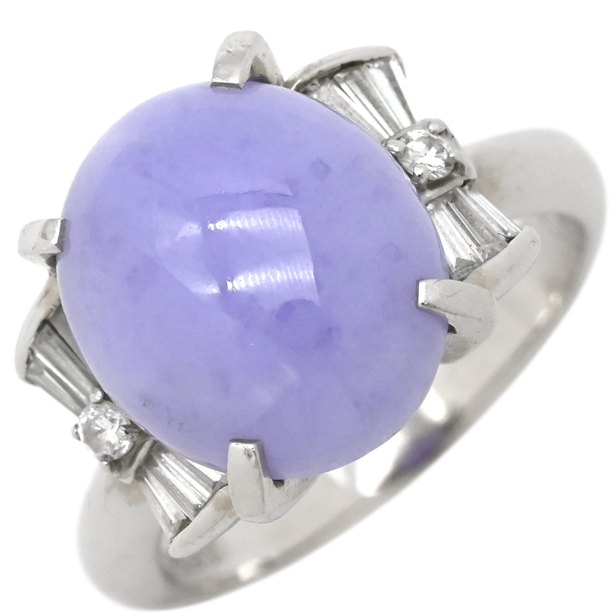 ノンブランド NON BRAND ラベンダー翡翠 ダイヤ リング ライトパープル×プラチナシルバー リング 指輪 プラチナム ラベンダージェダイト 紫 オーバルカボション バゲットカット 9号
