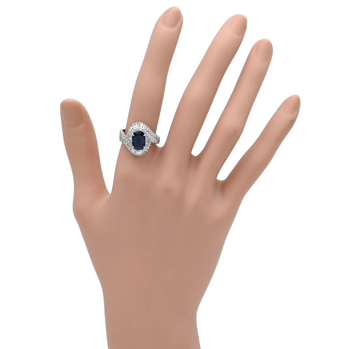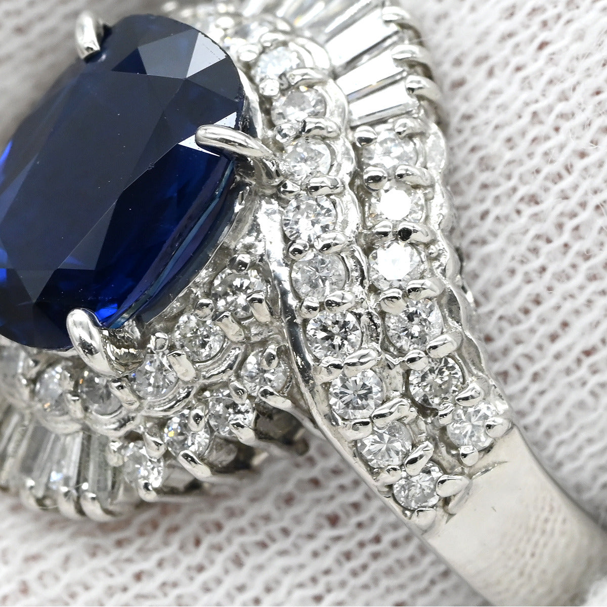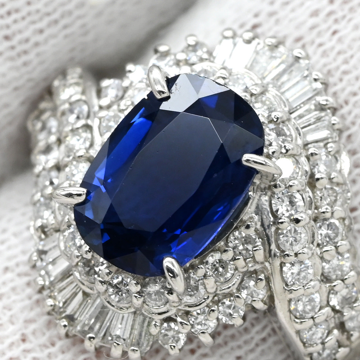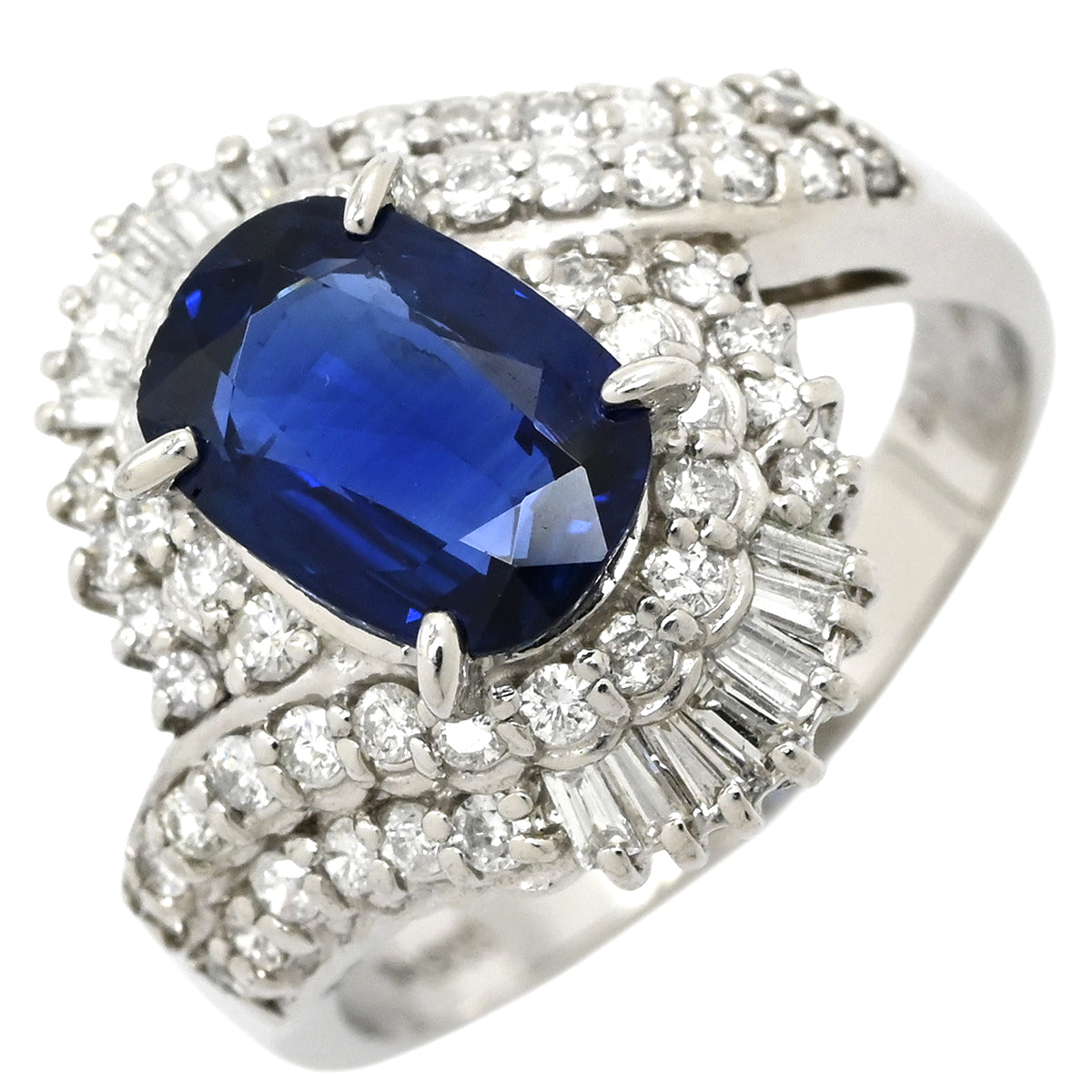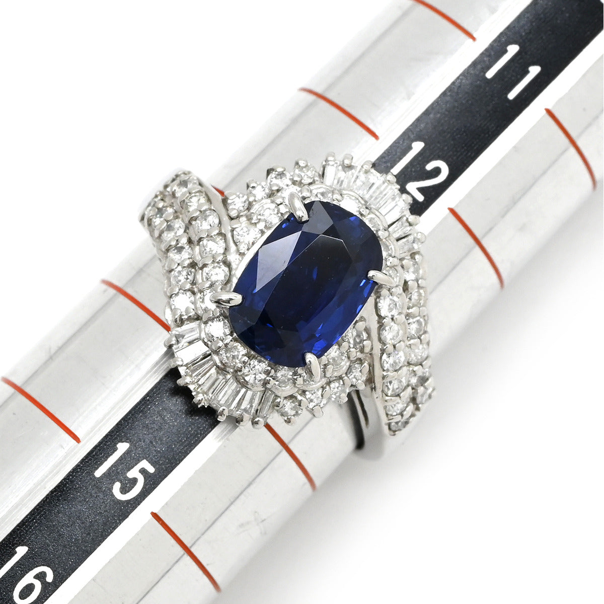 ノンブランド NON BRAND ブルーサファイア ダイヤリング プラチナシルバー リング 指輪 ロイヤルブルー 青 13.5号