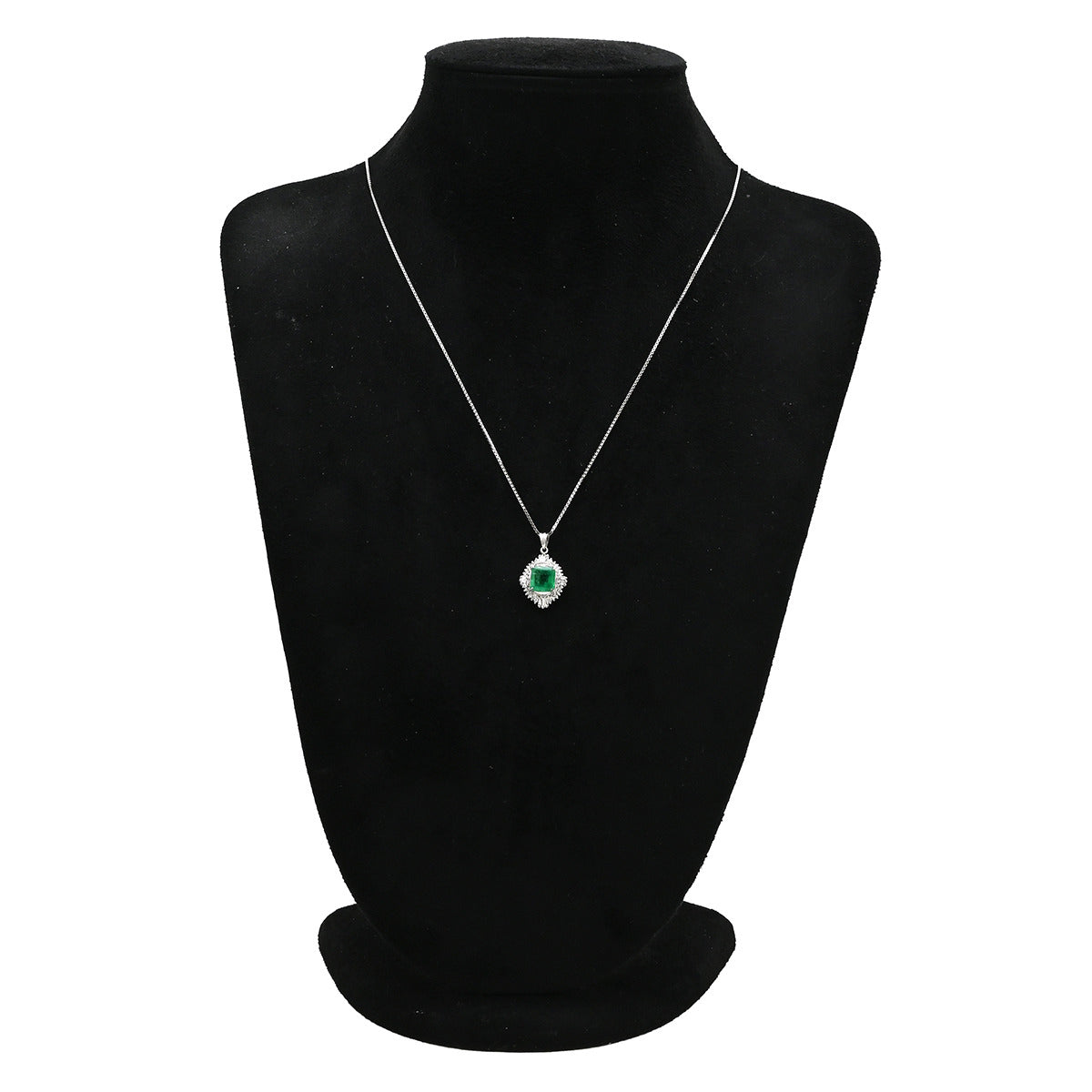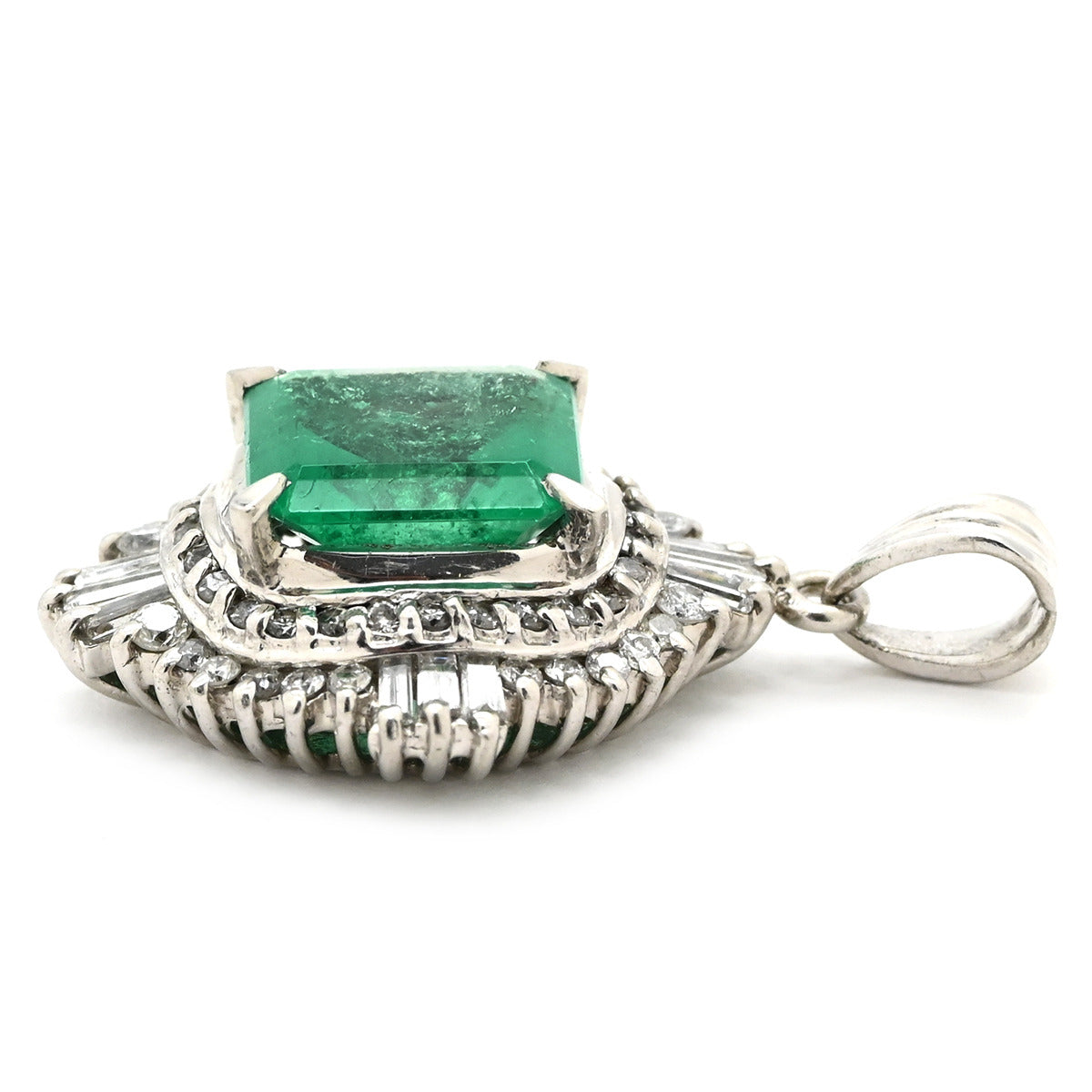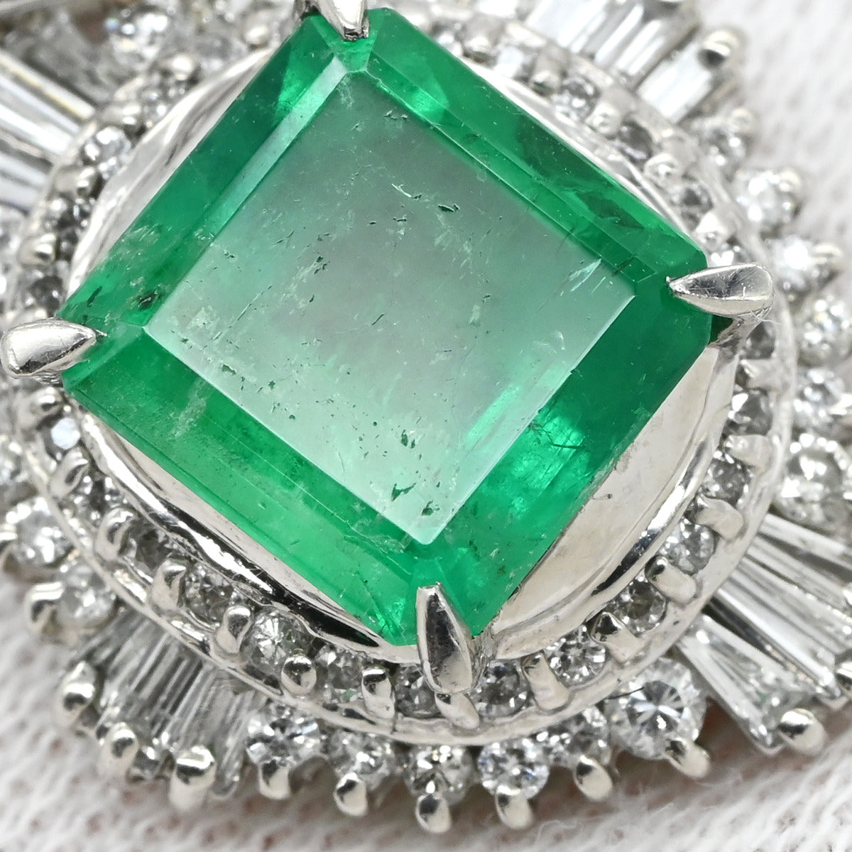 ノンブランド NON BRAND エメラルド ダイヤ エメラルドグリーン×プラチナシルバー ペンダントトップ 緑 ネックレストップ エメラルドカット スクエア プラチナム
