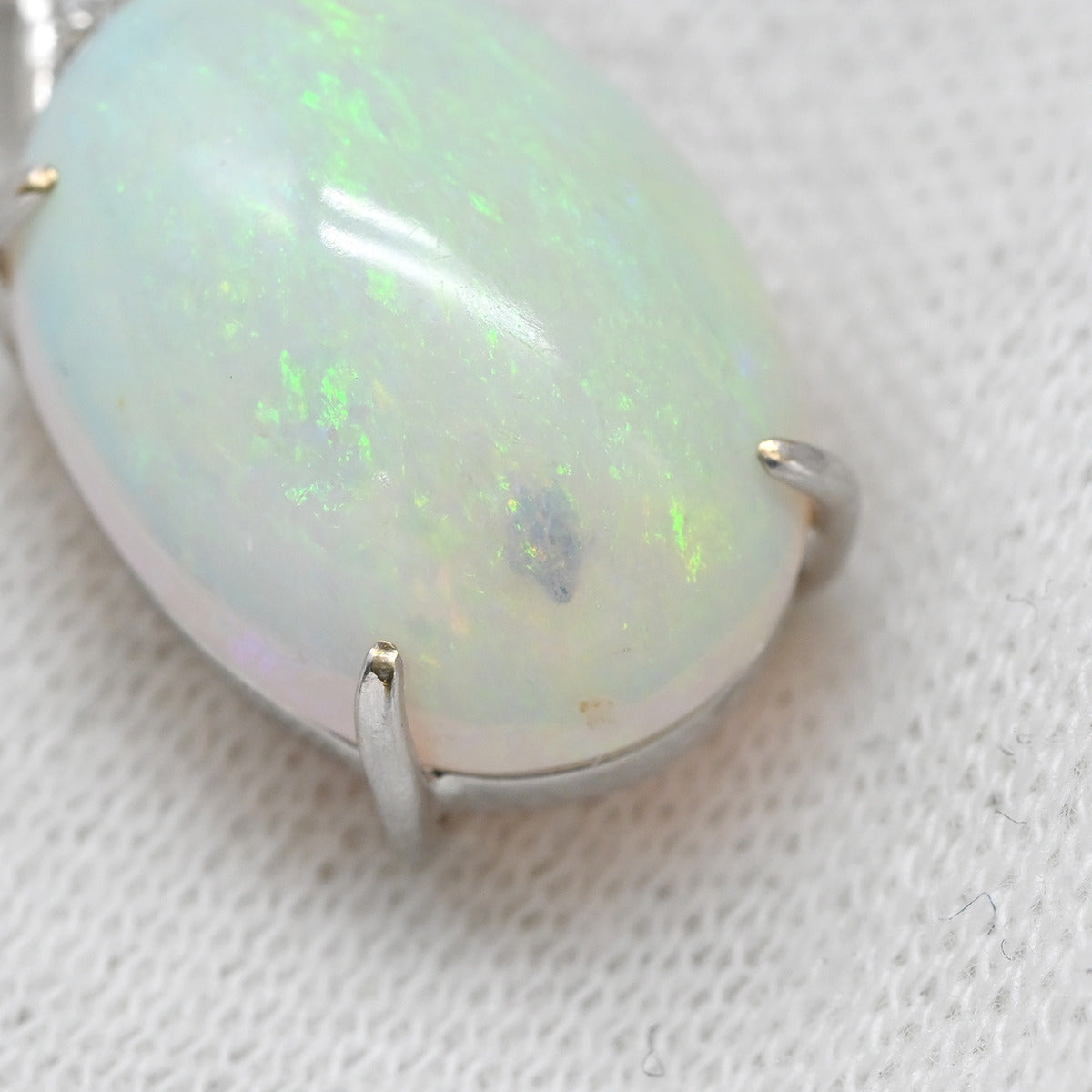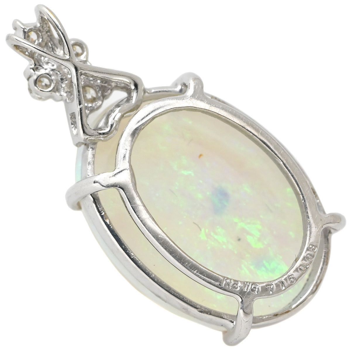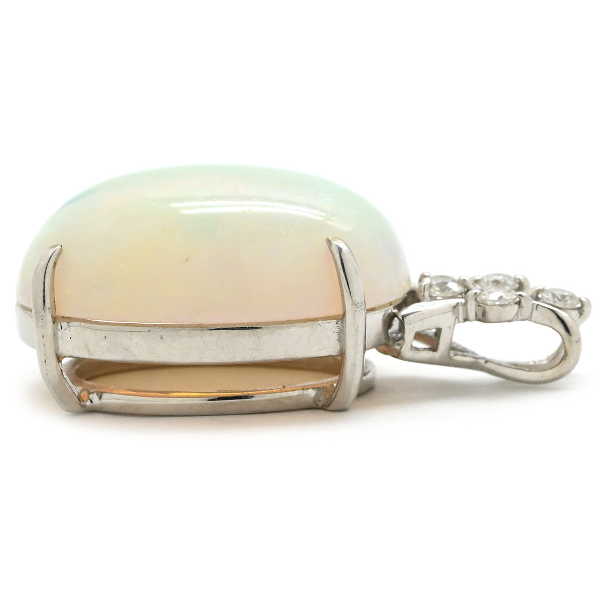 ノンブランド NON BRAND オパール 7ct ダイヤモンド ホワイトゴールド ペンダントトップ 白 ホワイト 1石 4Pダイヤ カボションカット ネックレストップ チャーム