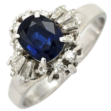ノンブランド NON BRAND ブルーサファイア ダイヤ リング ブルー×プラチナシルバー Pt900 サファイア ダイヤモンド リング 指輪 青 プラチナム 11.5号