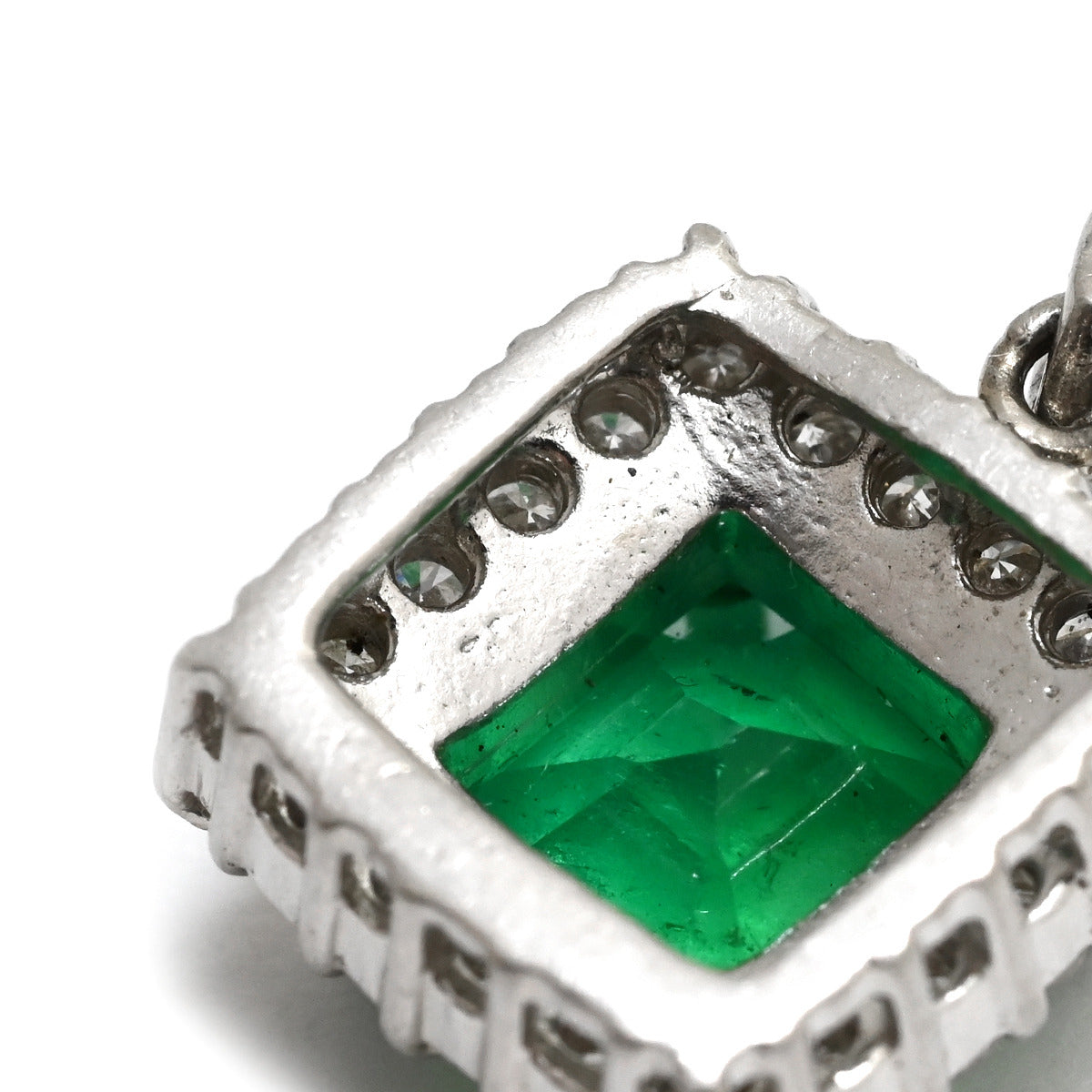 ノンブランド NON BRAND エメラルド ダイヤ プラチナシルバー Pt900 エメラルド ダイヤモンド ペンダントトップ 緑 コロンビア産 ネックレストップ スクエア