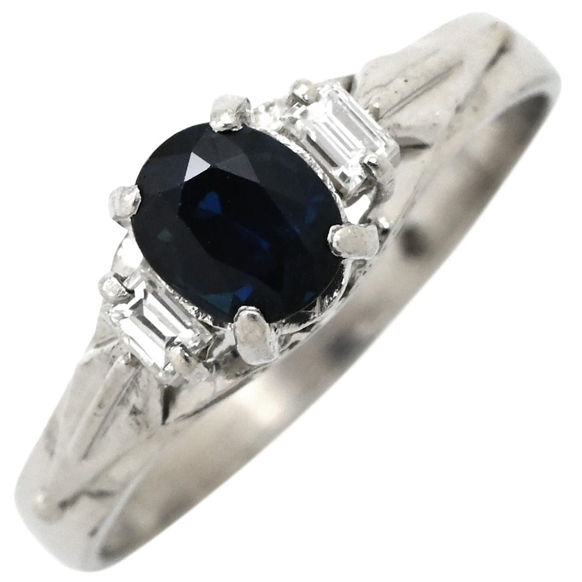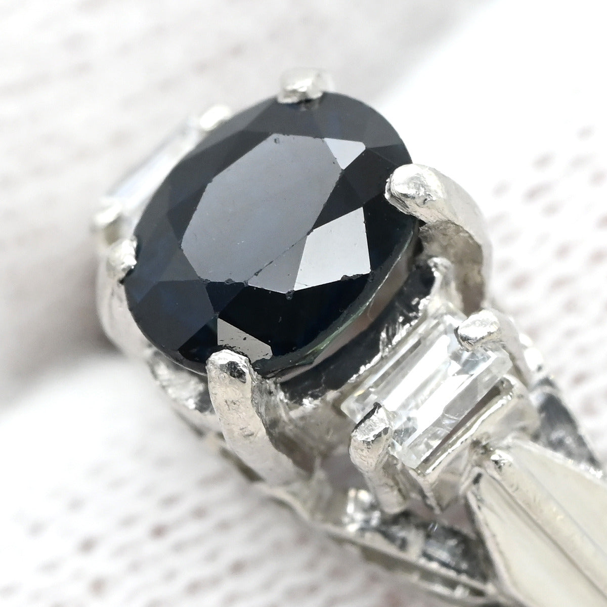 ノンブランド NON BRAND ブルーサファイア ダイヤリング プラチナシルバー Pt850 サファイア ダイヤモンド リング 指輪 青 立爪 14号