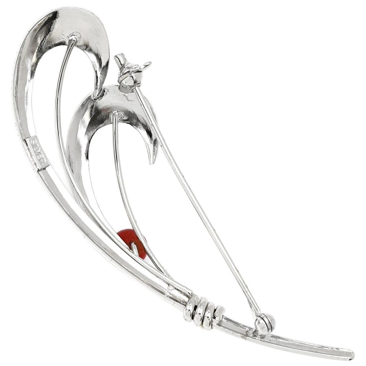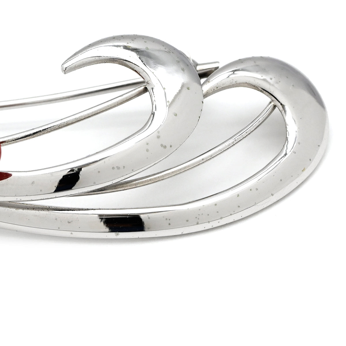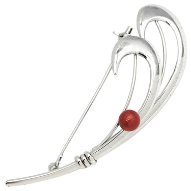 ノンブランド NON BRAND 珊瑚 シルバー×コーラル シルバー 珊瑚 ブローチ 赤 流線ブローチ