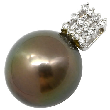 ノンブランド NON BRAND ブラック×ホワイトゴールド ペンダントトップ ネックレストップ チャーム 黒蝶 パール 真珠 ダイヤ Au750 18K 18金